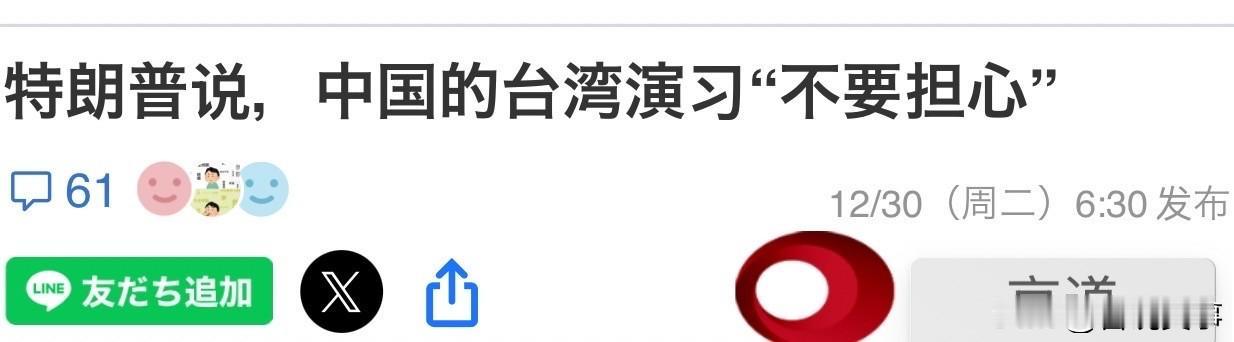 针对中方军演!特朗普表态! 就在今天! 据共同社报道,美国总统特朗普29日通过媒体表示,虽然没有和中方沟通,但是这次解放军对台军演他说“不要担心”。 值得一提的是,曾几何时,美国不是航母就是军机在我们周边耀武扬威。如今,在绝对军事实力面前,美国政府已经基本无力介入台海问题。无论你美国政府怎么想,台湾问题是我们内部家事,我们不需要、也不允许你们指手划脚。