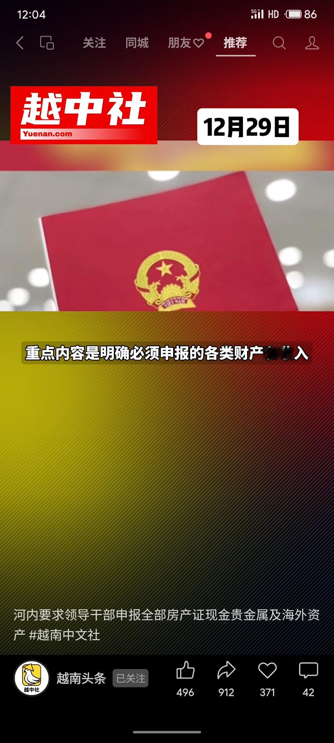 据越媒报道,河内市近日出台新规,要求领导干部全面申报包括房产、现金、贵金属及海外资产在内的所有财产。 分析认为,该政策是越南近年强力反腐行动的延伸,旨在通过强制披露增强透明度、遏制腐败。其申报范围之广(含价值超5000万越盾动产)体现了监管决心,但实际效果取决于执行力度与核查机制。目前信息主要源于单一媒体,有待官方文件证实。