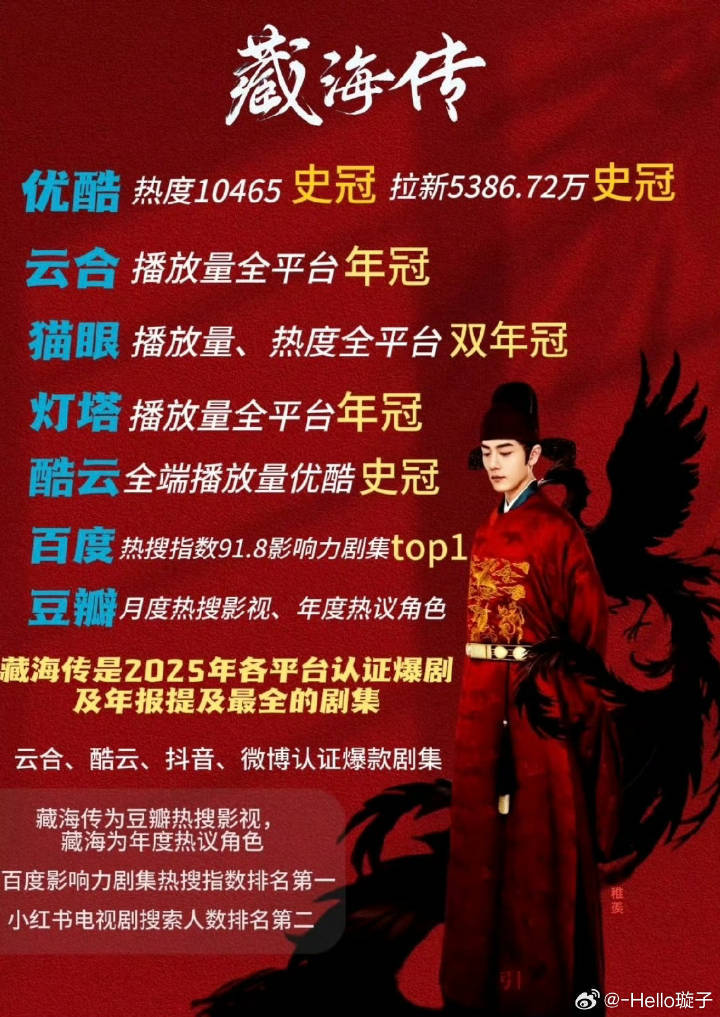 猫眼也发年度战报,藏海传拿下多平台年终战报第一名☝️大爆剧就是无短板!肖战太牛了!藏海传年度有效播放榜总冠军