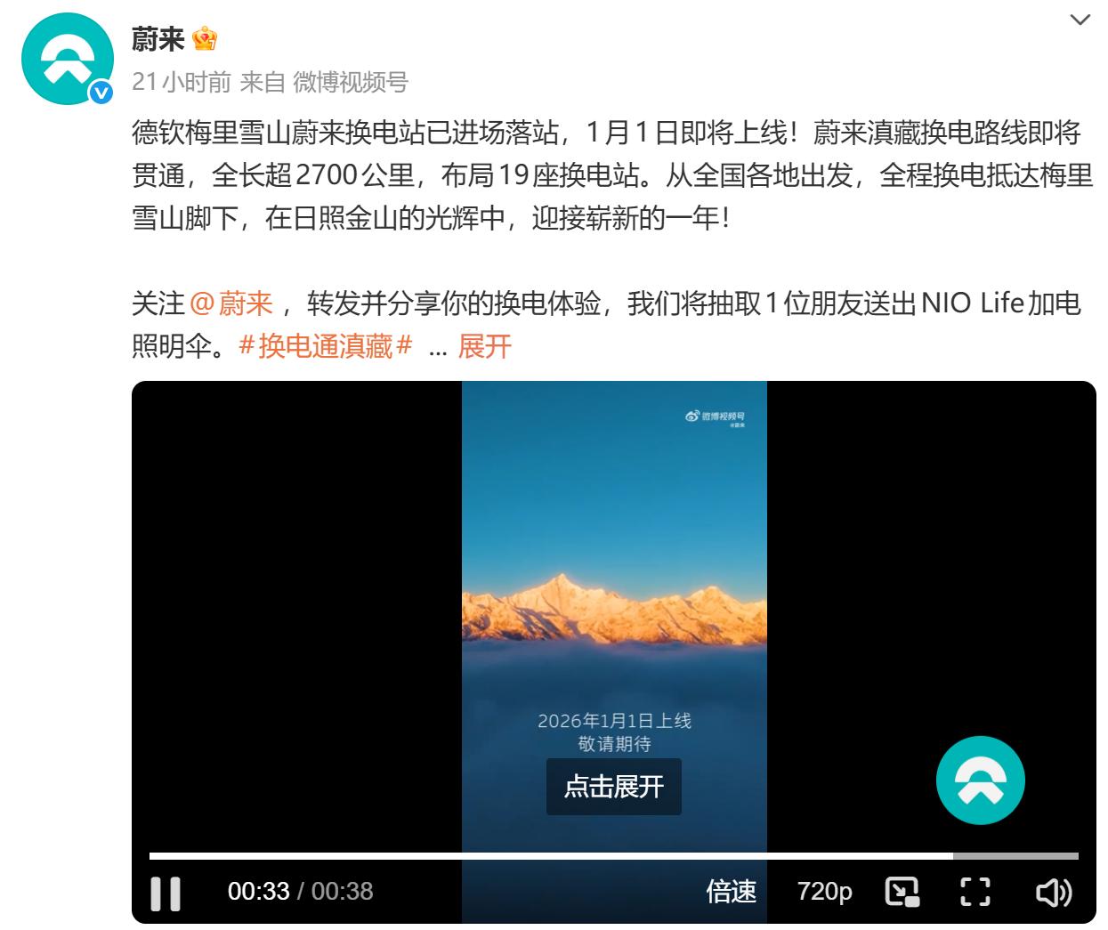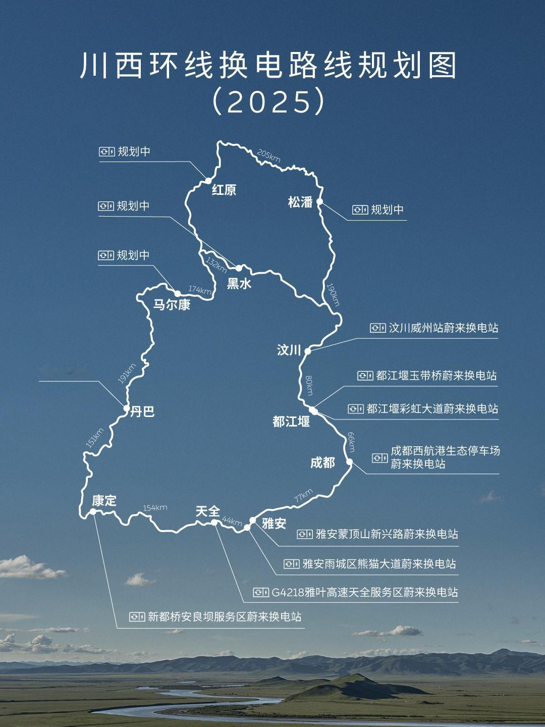 蔚来滇藏换电路线即将全线贯通 昆明到珠峰2700多公里 平均间距:142公里/座 (比很多高速服务区还密!) 目前16座已就位,剩下3座也将随“雪山C位”德钦梅里雪山站一同上线。 这条“电力天路”会让你选择开电动车进藏吗?