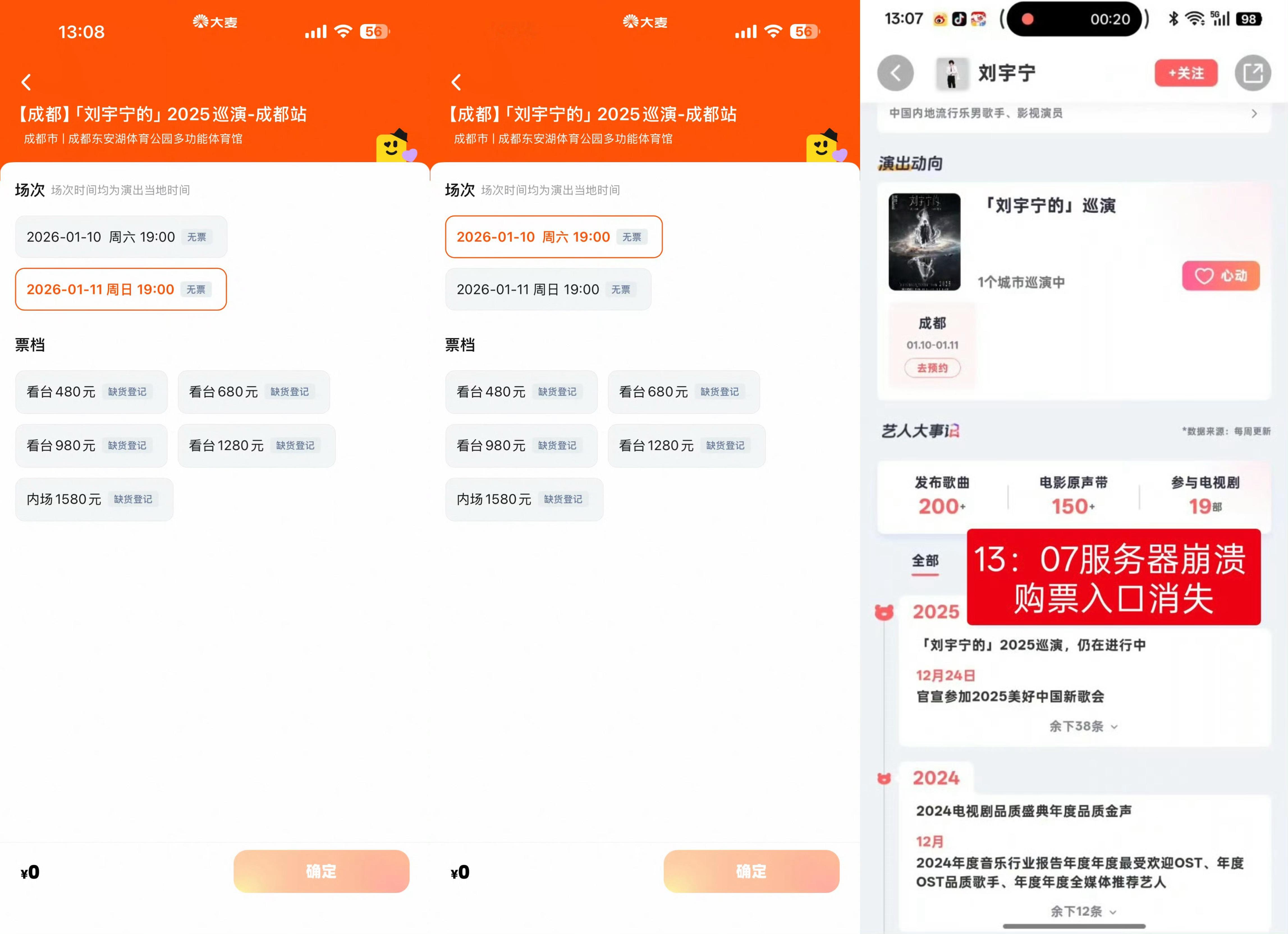 刘宇宁抢票刘宇宁演唱会太抢手了,直接把小程序干崩,票也秒售罄!!