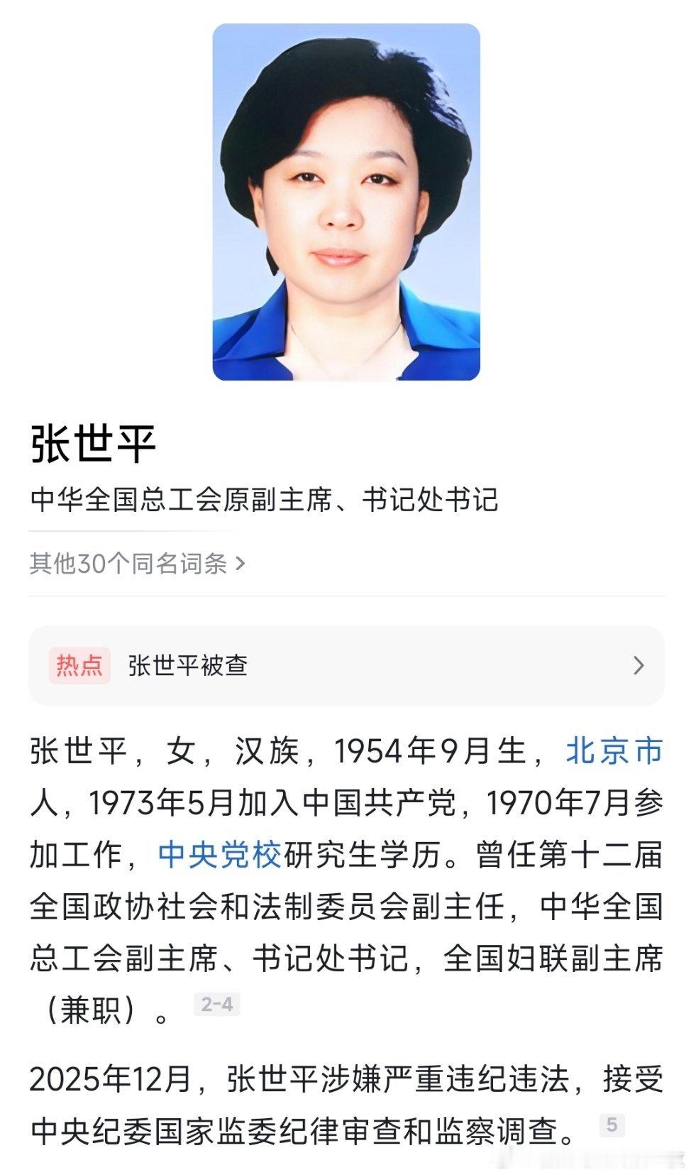 中华全国总工会原党组成员、书记处书记、副主席张世平接受中央纪委国家监委纪律审查和监察调查。
