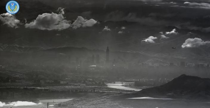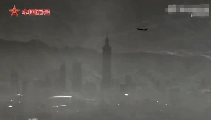 解放军无人机俯瞰台北101大厦。 其实距离可能有二三十公里,在海峡上空拍摄的,并