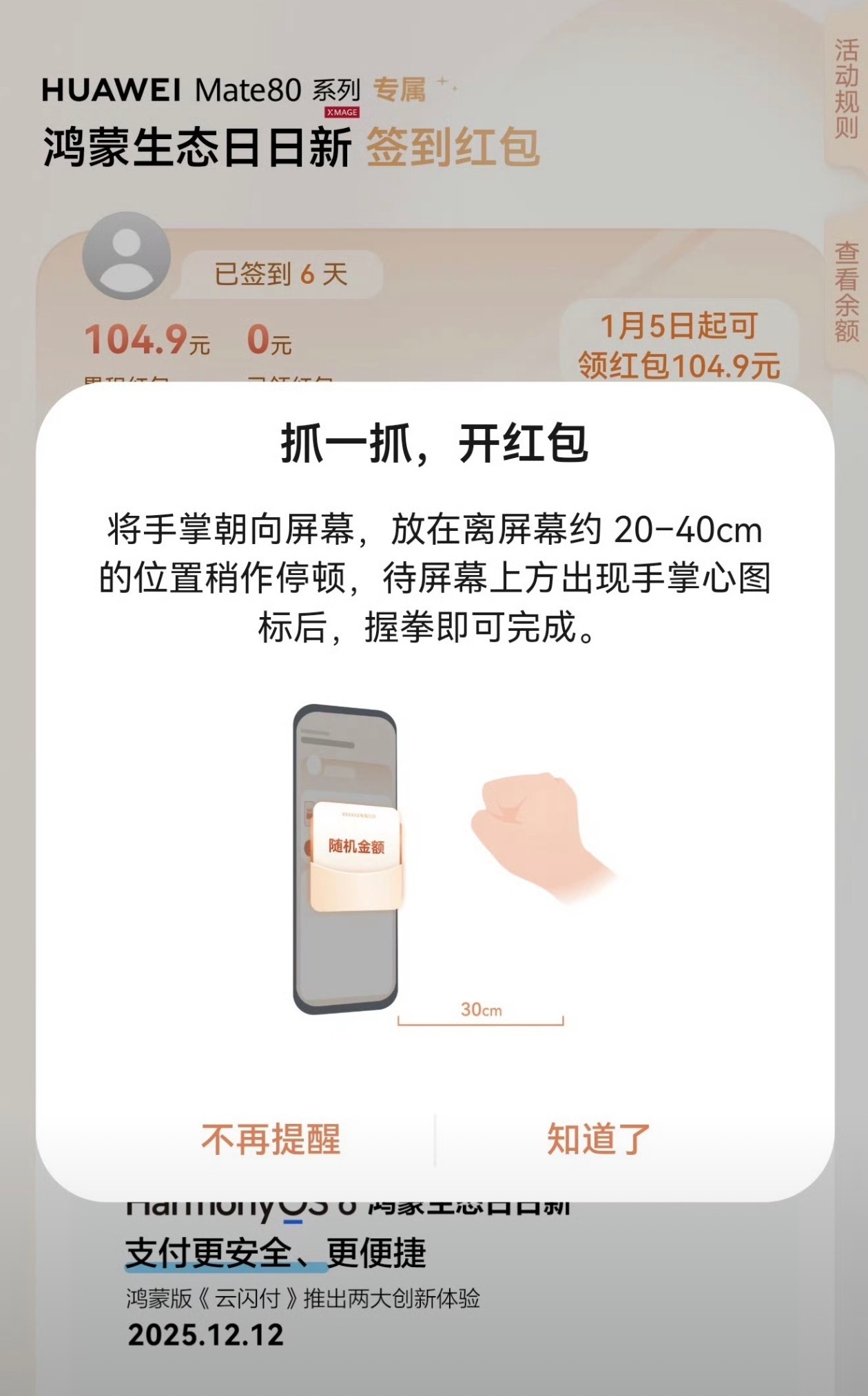 用了就回不去的手机功能HarmonyOS6 看到这两个话题,我能马上想到的是两个最近时间线上经常刷到的两个功能:小艺修图和喜闻乐见的一碰就有奖/伸手就来奖。HarmonyOS6带来的小艺一句话修图,记忆点就是动嘴修图,能动嘴就不动手很适合当下“懒人”,要知道脑子里想的到表达出来或者用工具手动做出来那可是天差地别,感谢AI,让一切懒人需求皆有可能。一碰就有奖/伸手就来奖,最大的感知就是看到时间线上好的买了新机领到大红包的,好像是每天都能领是吗?让手机赚钱的愿望实现了??对了,据说长按华为手机电源键唤醒小艺,说“鸿人有话奖”,还有惊喜可以领。