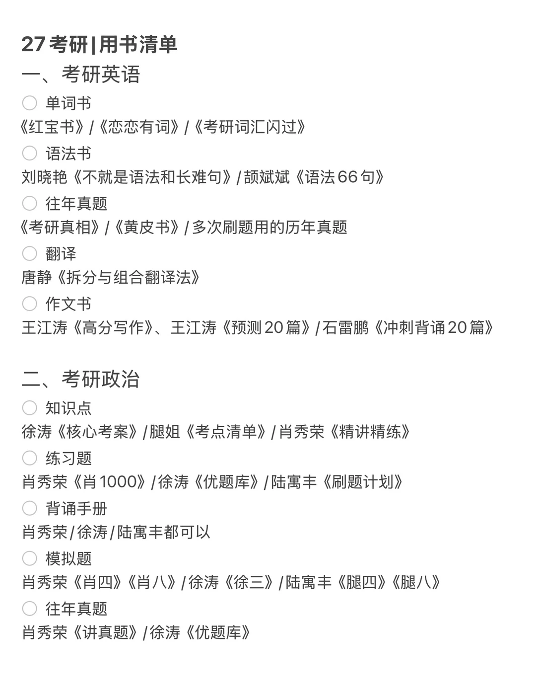 单词书、语法书、往年真题、作文书、翻译