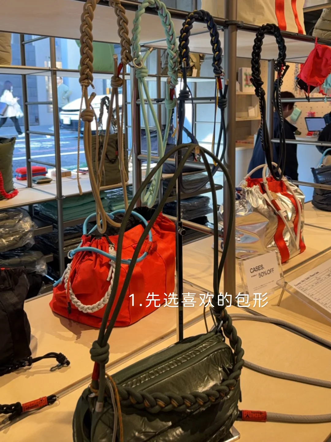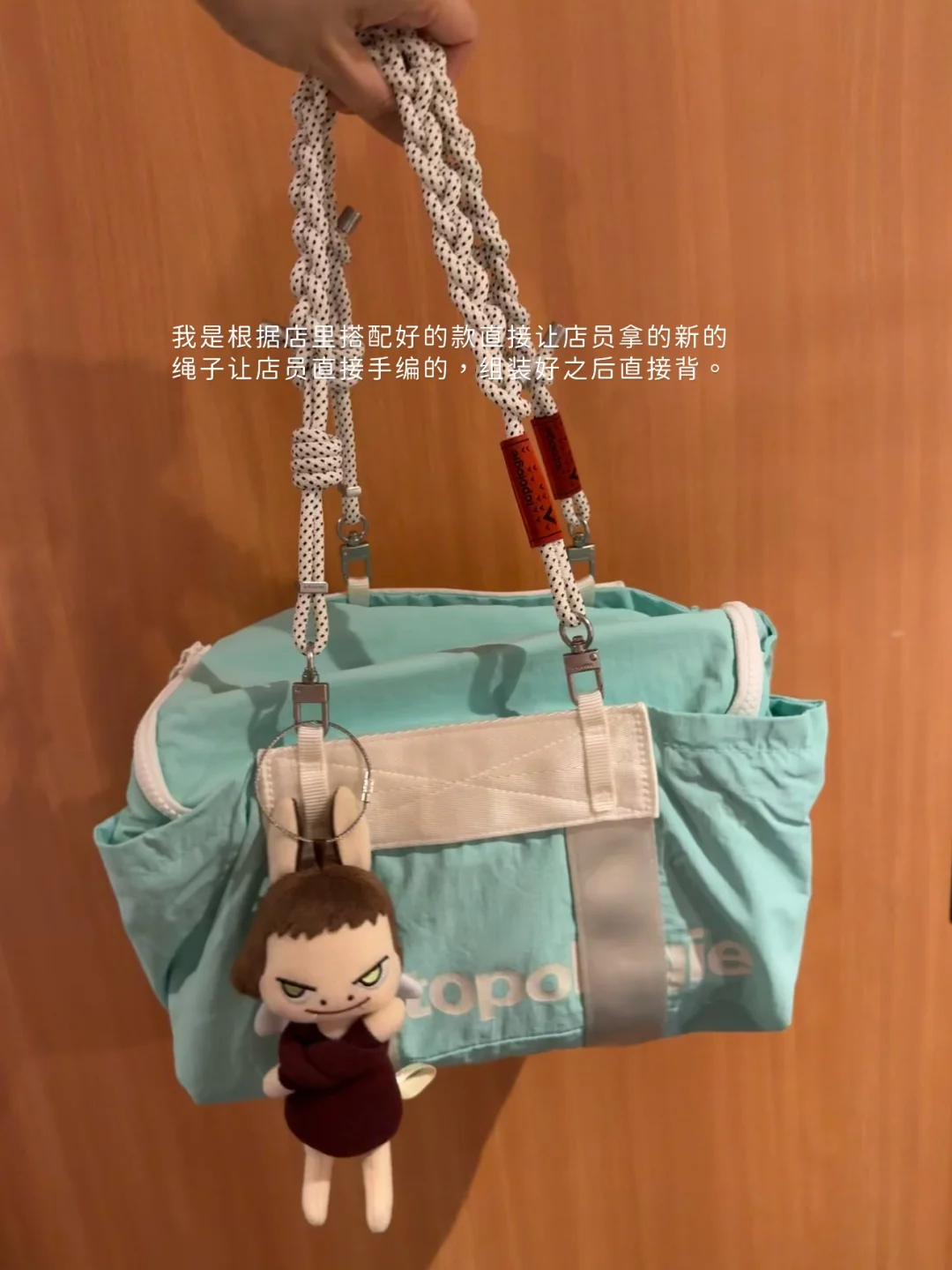 我是根据店里搭配好的款直接让店员帮我拿的新的,绳子让店员直接手编的,组装好后直接背。