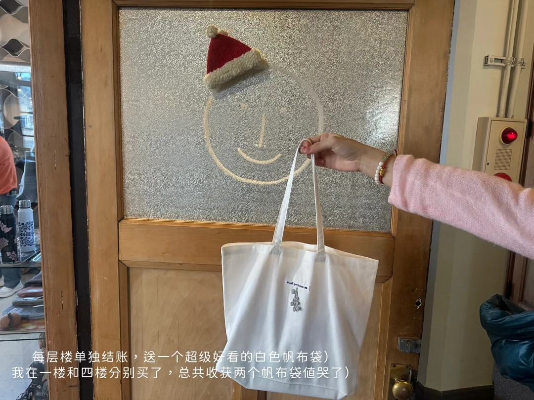 每层楼单独结账,送一个超级好看的白色帆布袋,我在一楼和四楼分别买了,总共收获两个帆布袋值哭了)