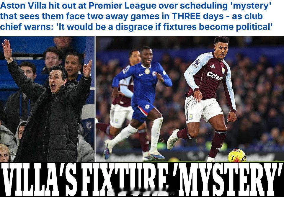 【阿森纳躺枪】阿斯顿维拉俱乐部高层,炮轰英超赛程安排不公,上半程两次对阵阿森纳(没有对阵森林),3天内连续两场客场硬仗(作客切尔西和阿森纳)。阿森纳vs阿斯顿维拉维拉主帅埃梅里,对于联赛赛程的安排表达了自己的看法:“在我20年的执教生涯当中,这是第一次在赛季上半段没有对阵其他19支球队,我们只对阵了18支球队,其中两次对阵阿森纳。我不明白为什么。正常情况下,我们应该在周二对阵诺丁汉森林,然后结束上半赛季,但是我只能接受这个安排。”标哥点评:换个角度,维拉下半赛季不用再对阵阿森纳,而且两次对阵保级球队森林,有更多的拿分机会。。。。