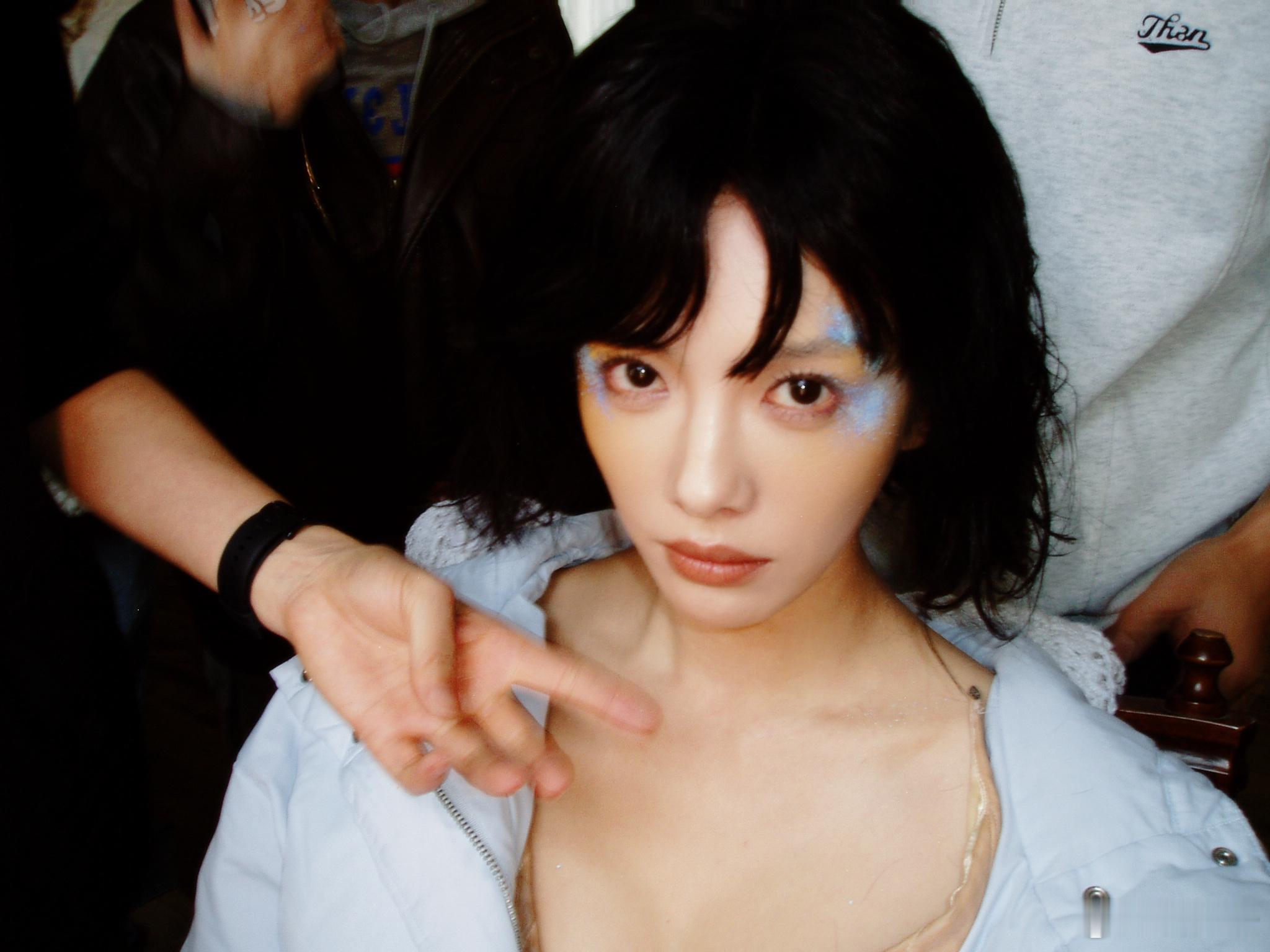 谁给蔡文静做的造型 这造型师是挖到宝了吧!利落短发彻底跳出以往的舒适圈,浅蓝眼妆添了几分清爽,银色猫眼美甲又拽又精致,完全没见过这么有态度的她!