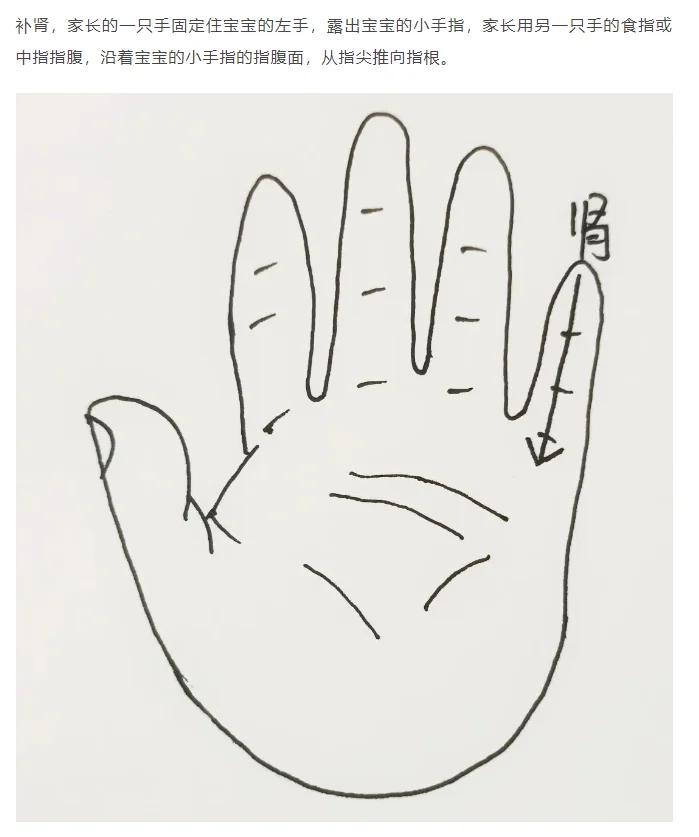 🌸2、小儿推拿,补脾经8分钟;清板门5分钟;揉外劳宫5分钟;揉足三里3分钟;补肾经5分钟,清天河水1分钟。