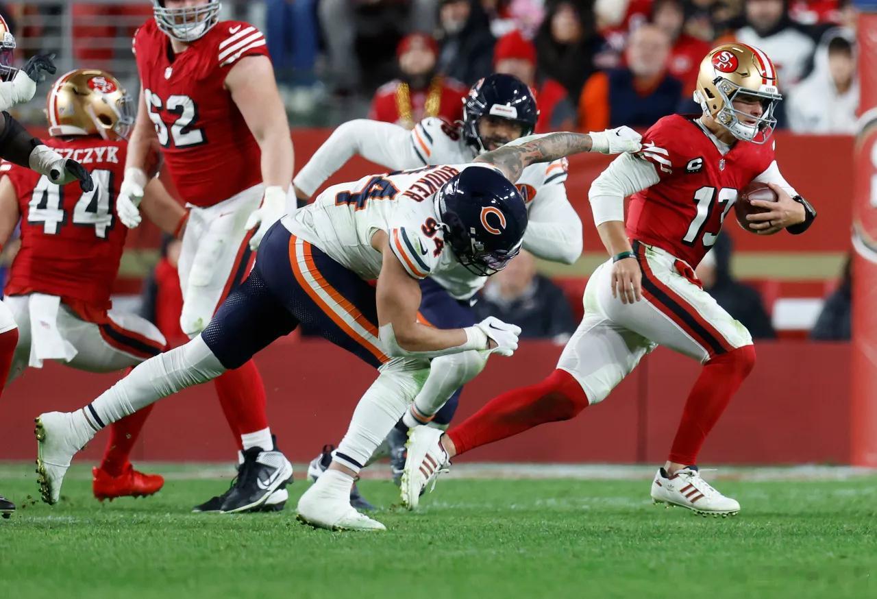 第17周大熊38:42 状元和无关紧要先生的对决两人基本上打个平手。普尔迪三传两跑五达阵