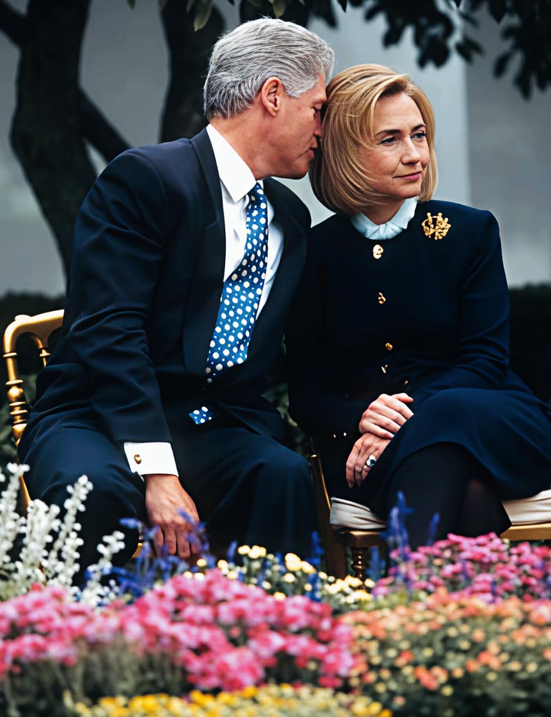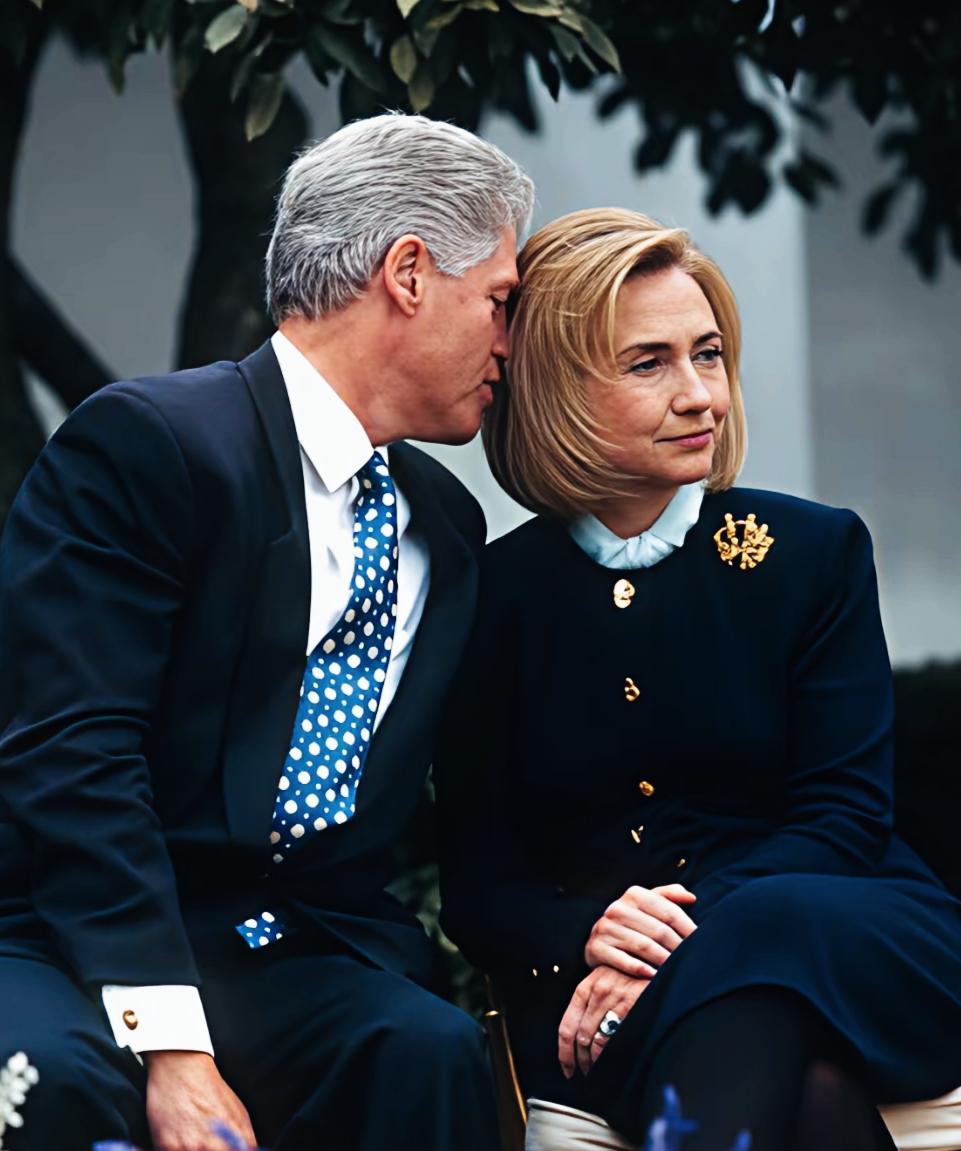 克林顿和希拉里在说什么呢? 克林顿靠希拉里这么近,说什么悄悄话呢? 希拉里的表情是什么意思呢? 看上去好像不太高兴的样子啊!