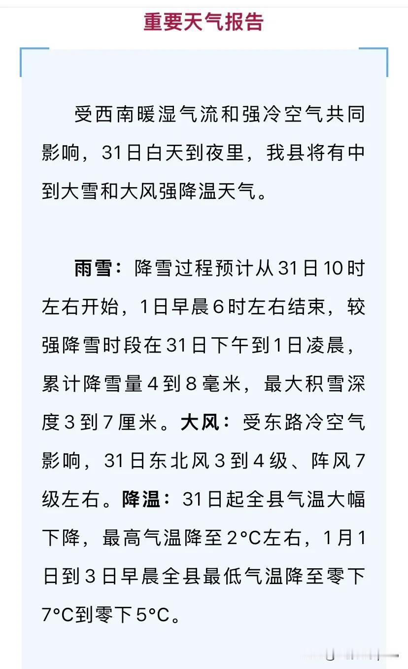今天的中到大雪没有来不奇怪,奇怪的是,一听说今天会有中到大雪,昨天下午学校就提前放假! 这两天我们河南天气预报,还有我们当地的天气预报,铺天盖地地连续预报说今天会有中到大雪,并且,下雪大度会达到3-7厘米,提醒人们注意防范,但直至现在,连一片雪也没见。这其实很正常,因为天气毕竟变化无常,尽管现在的气象预报设备高科技了不少,经常能够准确地预报天气状况,但也常有把握不准的时候,因此天气预报不准完全无可厚非。 但让人不理解的是,我们当地在听说今天会有中到大雪后,昨天我们这儿的各小学幼儿园就陆续提前放假了,最迟的也在昨天下午的三点钟通知家长去接孩子了。我们的下一代现在都变得这么娇气了吗?到底是为了安全,还是害怕承担可能的责任?久而久之,我们的下一代会不会变成遇到困难就逃避、缺乏责任担当的妈宝?这种教育理念合适吗? 还记得我们小时候,最深的雪都达到一尺厚,我们照样背着书包咯吱咯吱地踏着积雪去上学,路上遇到同学,还会开心地一边跑一边打着雪仗,到了教室,脸和手都是通红通红的,但浑身都是热乎乎的,第个人的脸上都挂着开心的笑容。然后就在老师组织下,大家伙儿一起,拿着木锨、扫帚把通往教室和厕所的地方都清开一条路,然后接着上课。 对此大家怎么看?请在评论区一起探讨。