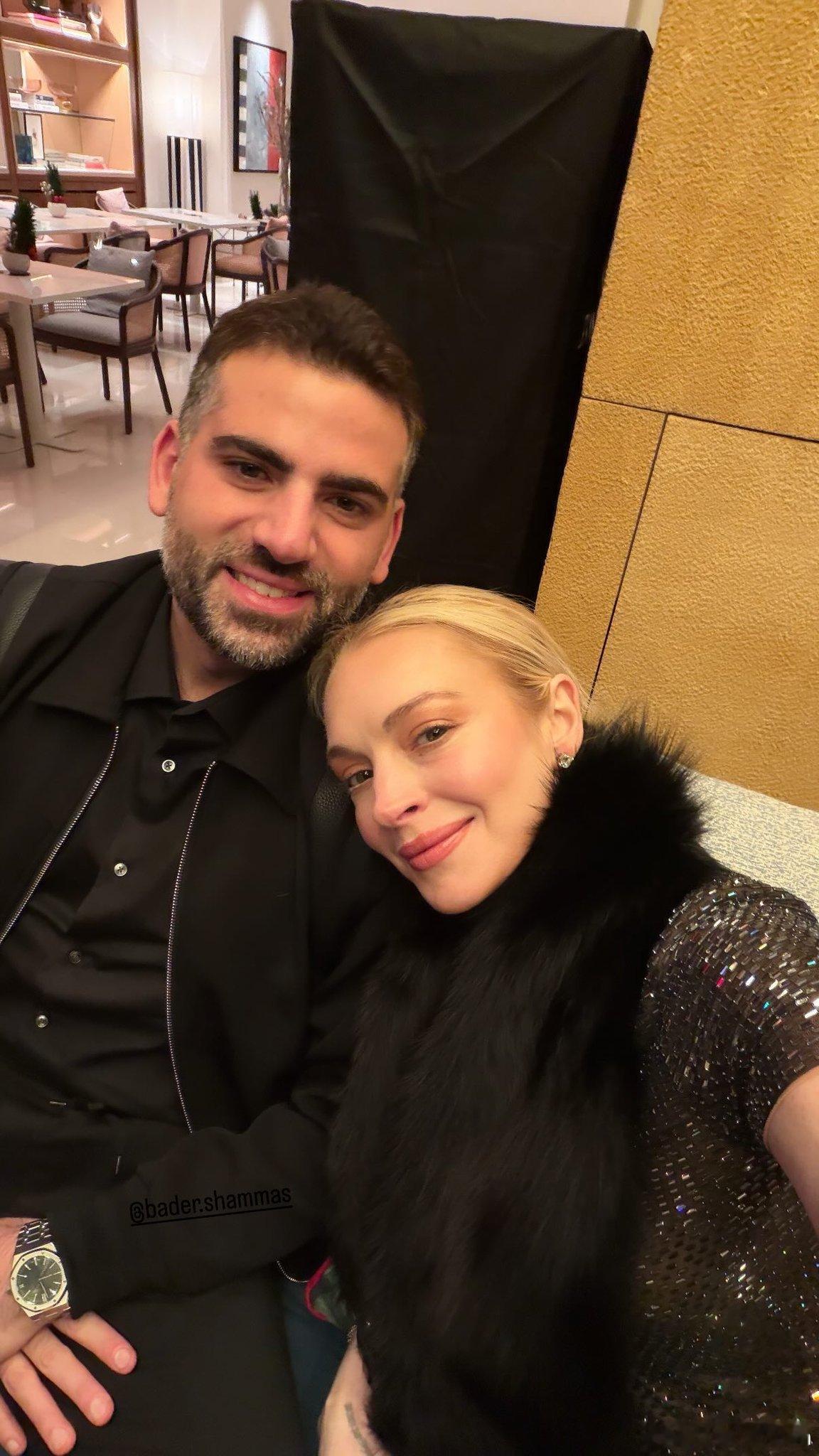 Lindsay Lohan林赛罗韩分享节日私照,美美打扮后和老公Bader Shammas约会贴贴