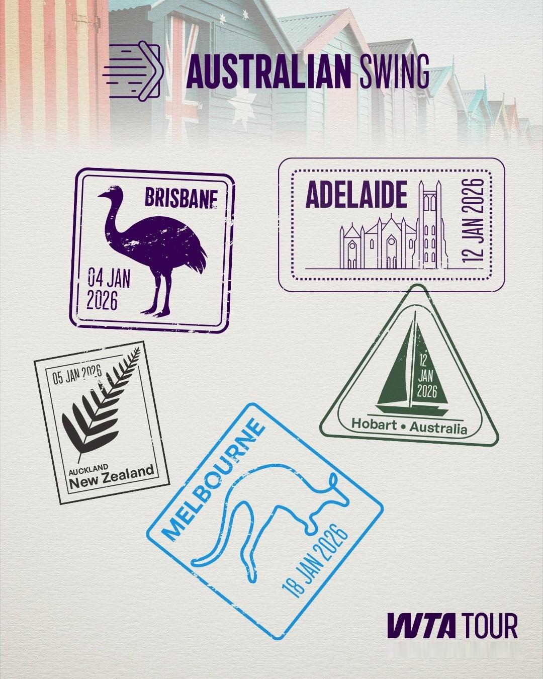 告别2025,迎接2026👋 观赛时间友好的澳洲赛季来袭,将网球加入你的日程规划吧!👀📍联合杯(WTA500)📅1月2日-11日📍WTA500布里斯班站📅1月4日-11日📍WTA250奥克兰站📅1月5日-11日📍WTA500阿德莱德站📅1月12日-17日📍WTA250霍巴特站📅1月12日-17日📍澳网(大满贯)📅1月18日-2月1日