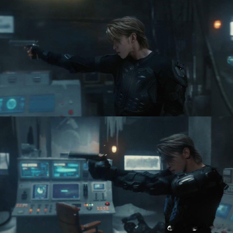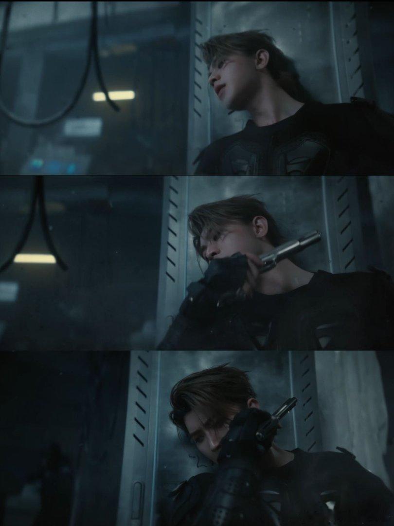 蔡徐坤2025最后一天帅成啥样了金发背头配紧身服持枪帅到我了,本年度最绝造型,眼神狠到拉丝开枪干脆利落