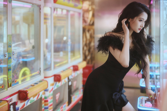 关晓彤羽毛V领黑裙关晓彤羽毛V领黑裙,关晓彤浙江卫视跨年晚会造型出图,完全优雅