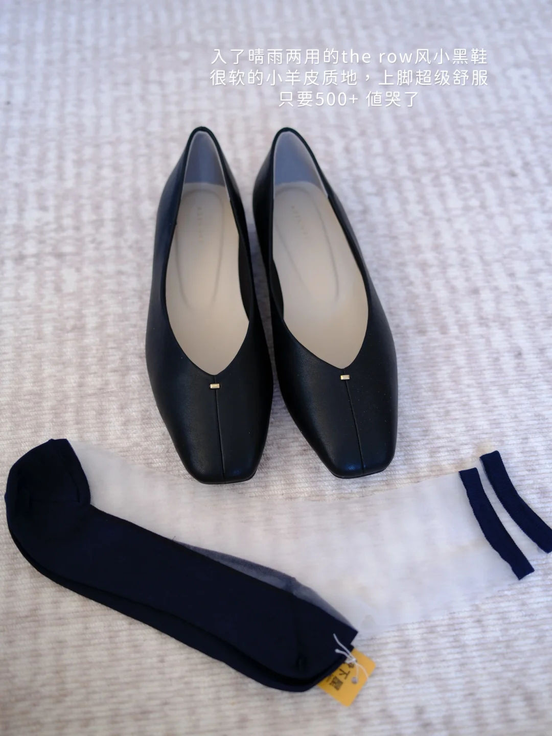 第一次入这个牌子,很通勤简约,入了晴雨两用的the row风小黑鞋,很软的小羊皮质地,上脚超级舒服,made in Japan,结账时告诉不要鞋盒他们回自己回收更加环保💰只要500+ 值哭了