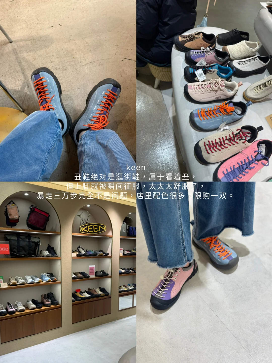 丑鞋绝对是逛街鞋,属于看着丑,但上脚就被瞬间征服,太太太舒服了,暴走三万步完全不是问题,店里配色很多,限购一双。