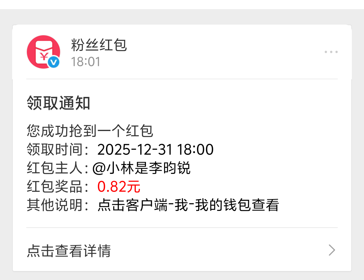 李昀锐跨年红包领到了小林的红包啦 第N次领到啦 领到红包的 记得来预约李昀锐的待播剧《冰湖重生》《耀眼》《和成令》《尚公主》还有今晚的跨年舞台 今晚我们一起跨年🌲 🌲李昀锐跨年红包