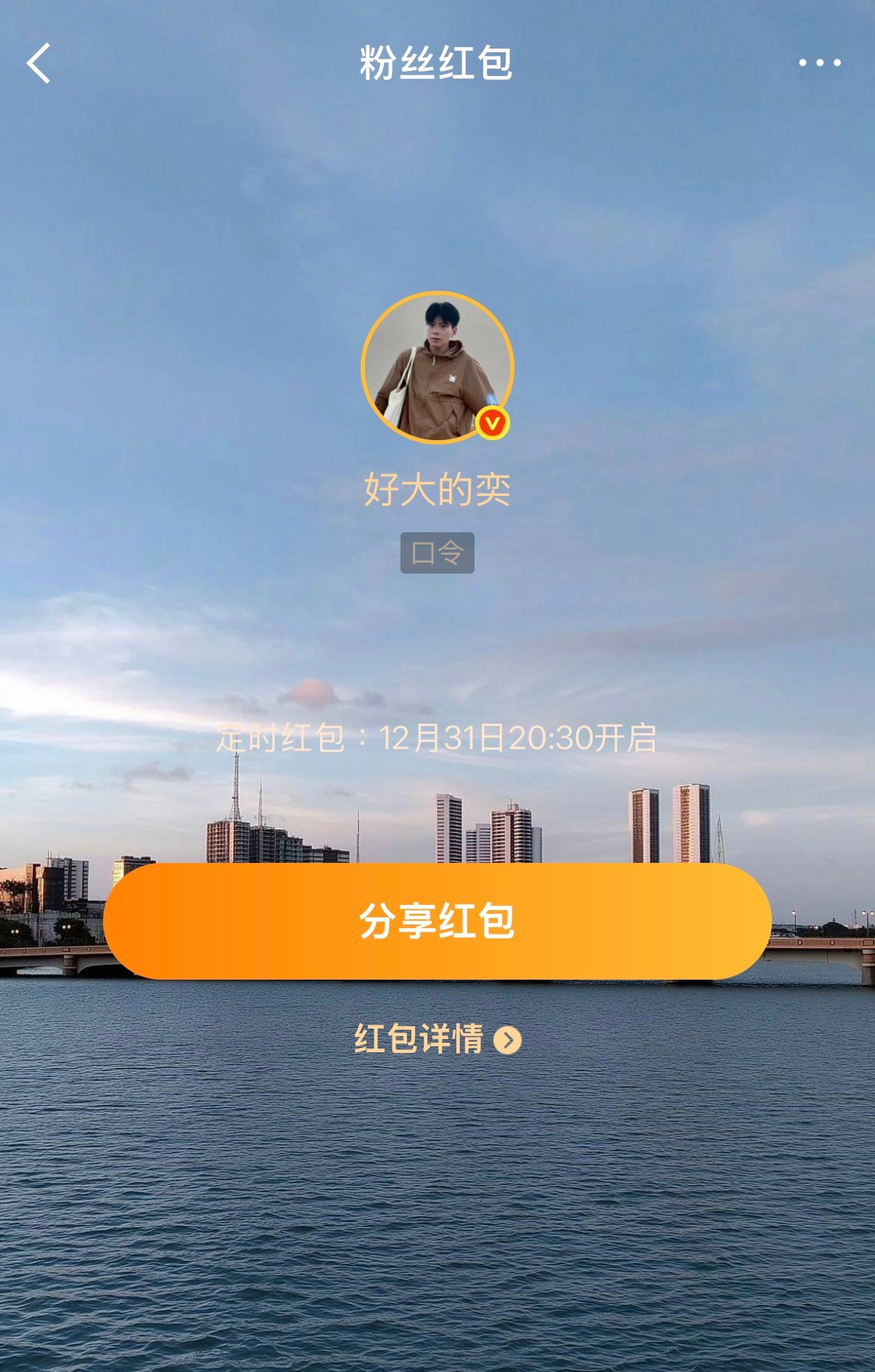 微博跨年的明星红包抢不着,可以来大奕这里抢红包。20:30开始,包了3000个。口令如图。微博跨年明星红包抢红包