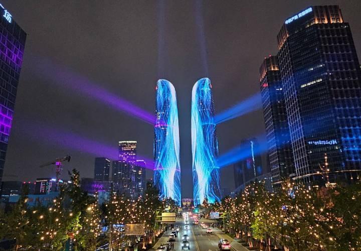 双子塔的灯光今晚真的美翻了,每一束光都藏着一个心愿,浪漫到让人挪不开眼👀成都双