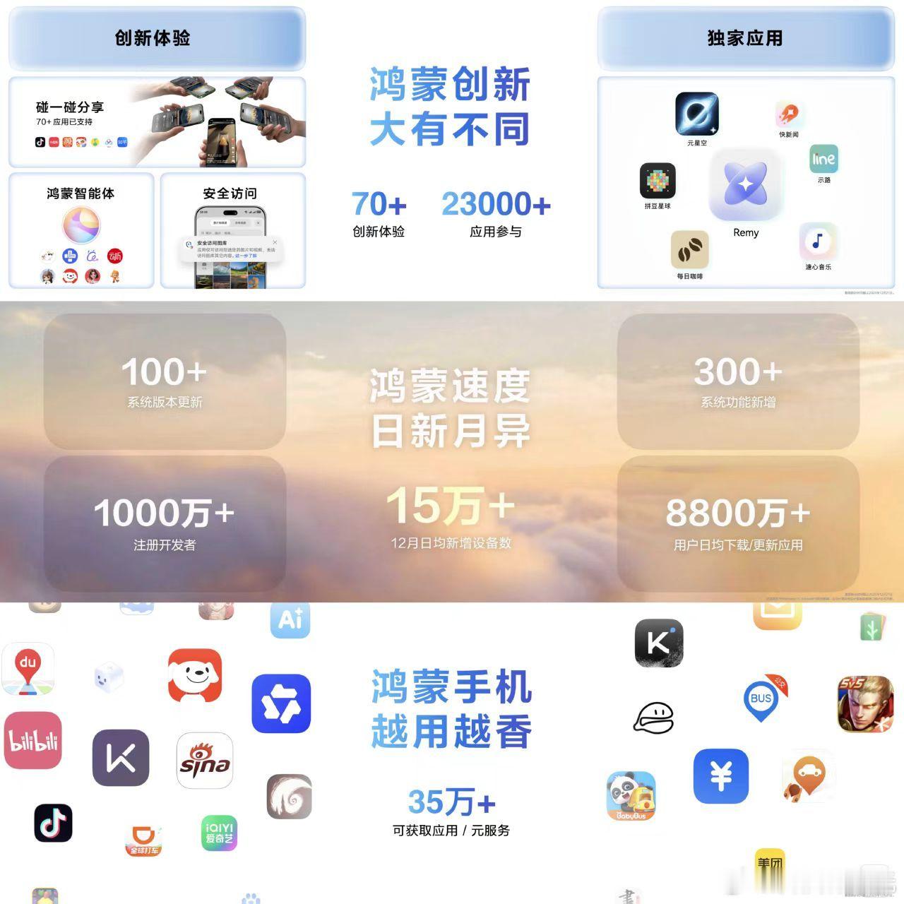 与鸿蒙共赴下一个1000天 看完罗振宇《时间的朋友》跨年演讲,「1000天后的世界」这个主题,最戳人的就是长期主义的力量:不贪一时之功,只求日日精进,时间会给出最好的答案,这也是鸿蒙系统一路走来的真实写照。从系统攻坚到生态共建,鸿蒙始终笃行长期主义,一步一个脚印走出自己的节奏。2025年更是鸿蒙跨越式成长的一年,鸿蒙6的正式落地带来体验全面升级,超3600万终端接入、千万级开发者深耕、35万+应用完成适配落地,这份亮眼的成绩单,从不是一蹴而就的奇迹,而是日复一日的坚守与深耕。技术的突破从无捷径,生态的繁荣贵在坚持。鸿蒙的下一个1000天,是体验的持续进化,是生态的持续扩容,更是中国科技以长期主义奔赴未来的底气。心有所持,行有所往,时间终会见证所有坚守的价值