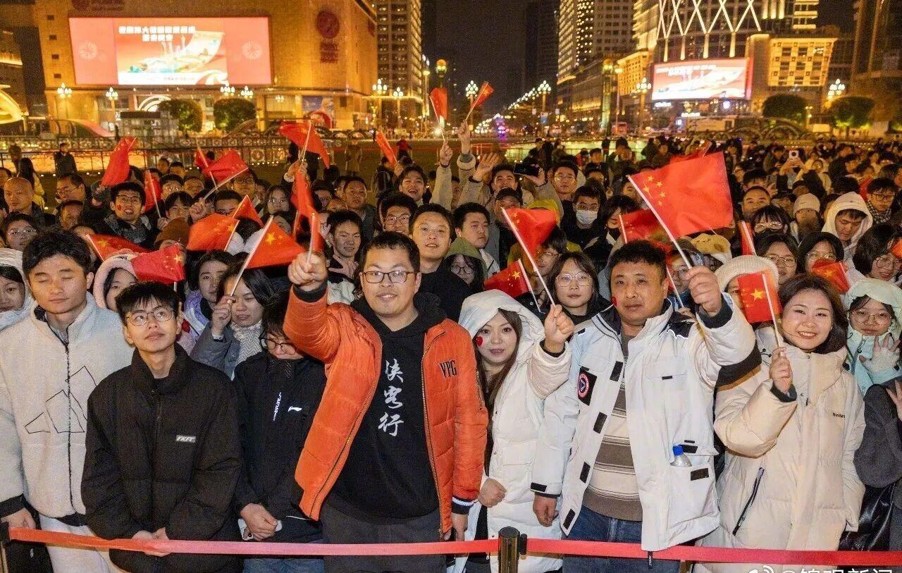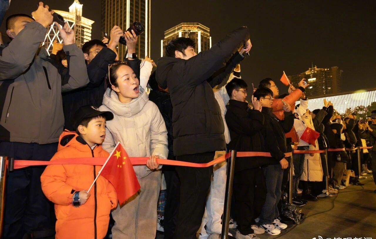 “我们早早地就从家出发了,怕来晚了没有好位置。”人群中,市民张女士正在为9岁的儿子围上红色的围巾,在夜色里格外显眼。她笑着告诉我们:“我们一家三口希望能在这里与国旗合影留念,迎着晨曦拍下2026年的第一张照片。”