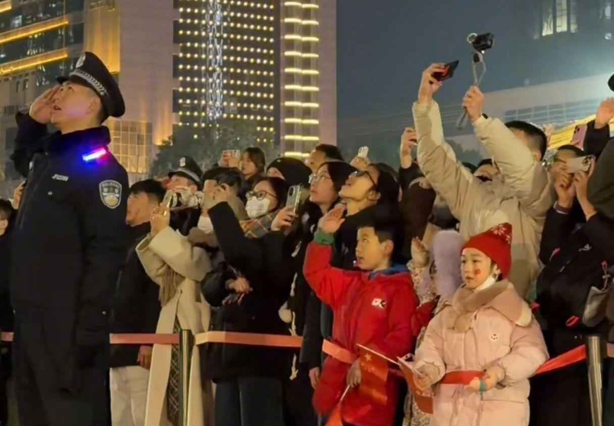 【迎新年!成都天府广场举行升旗仪式,市民游客凌晨排队观礼】1月1日,成都天府广场举行升国旗仪式。6时许,参加升国旗仪式的市民陆续来到广场,共同见证新年第一场升国旗仪式。36名武警“蓉城国旗护卫队”队员手持钢枪,迈着铿锵整齐的步伐,护卫五星红旗至升旗台。7时整,五星红旗升上旗杆顶端,现场响起热烈的掌声和欢呼声。大家纷纷拿出相机,留下难忘瞬间,祝愿祖国繁荣昌盛,祝福大家新年快乐!(四川观察)