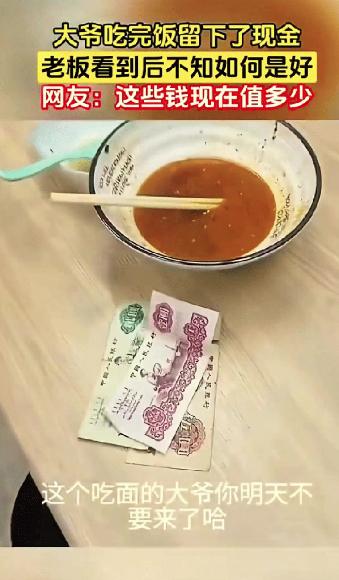 安徽一大爷餐馆吃面,吃完直接走了,老板以为大爷逃单,跑过去才发现,大爷在桌上留了