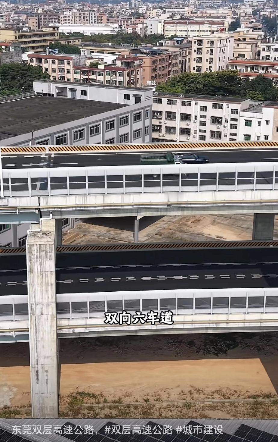 全国第一条双层高速公路在东莞已经建成通车了! 1.东莞莞番高速是全国首条大规模采用双层桥设计的高速公路,于2023年12月28日全线通车,其中三期约8公里路段为双层桥结构,松山湖、寮步段约4.3公里采用左右幅叠合双层桥,比单层桥方案节约土地约800亩,减少征拆约8.3万平方米 。 2.路线与规模:全长约64.48公里,横贯东莞东西,途经11个镇街,双向六车道,设计时速100公里,总投资约221亿元。 3.双层设计亮点:与环莞快速共线段上跨广深铁路的双层桥为国内首创,填补了双层公路钢砼结合桥转体施工跨越运营铁路的空白。 4.通车效益:沙田至桥头的行车时间从近2小时缩短到约35分钟,强化东莞与广州、惠州的交通联系,缓解虎门大桥等周边路网压力。