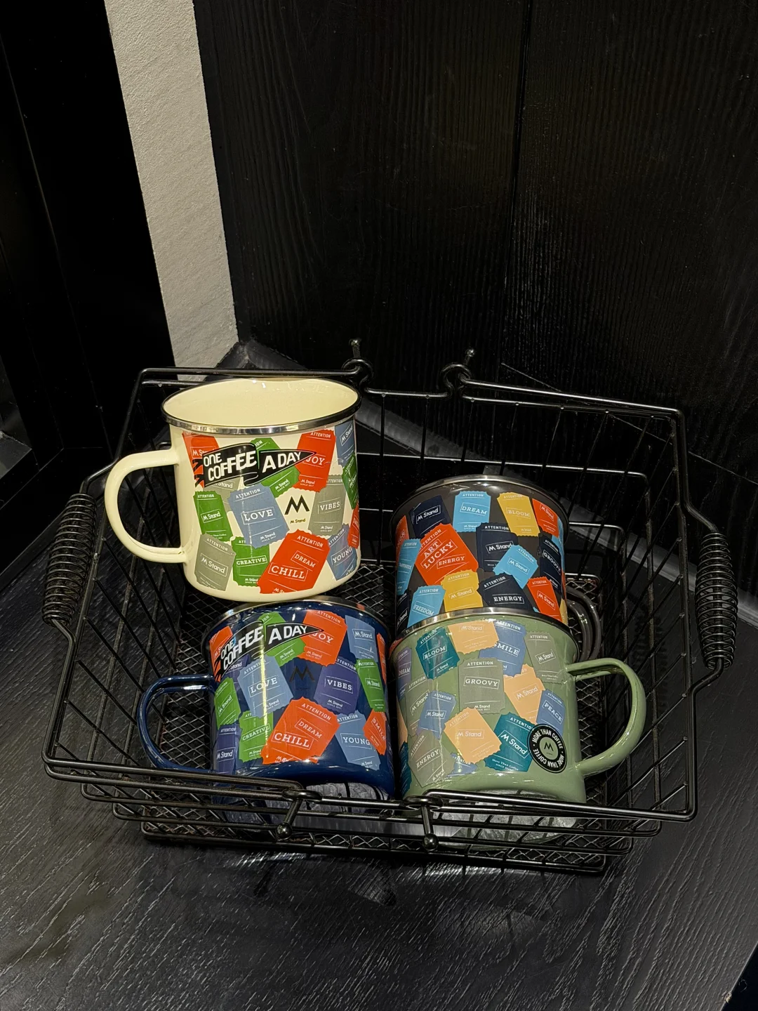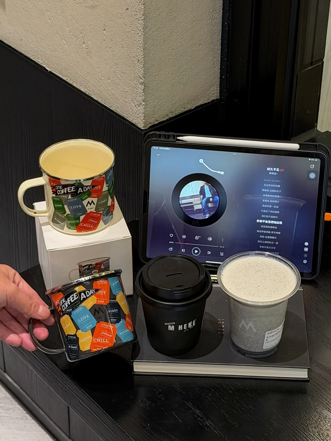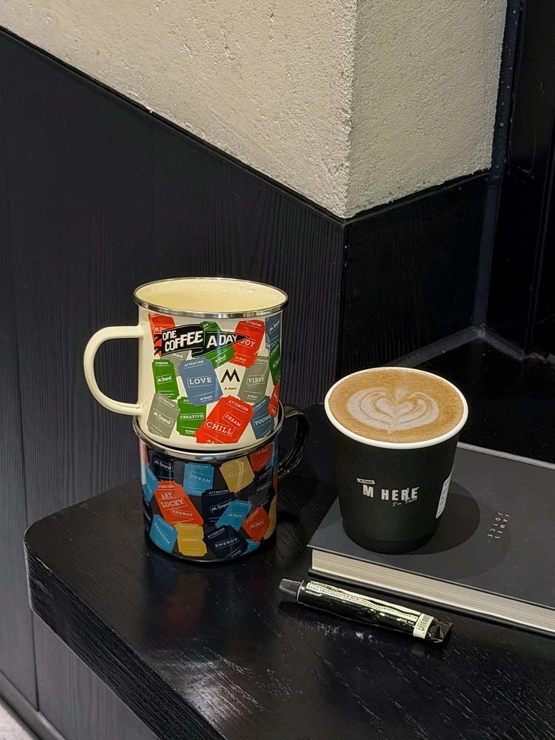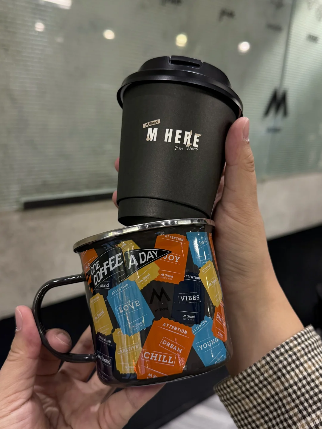 M Stand的杯子真的永远不会嫌多hhh😭😭!! 新出的复古搪瓷杯四种颜色可选: 👉米色、绿色💚、灰色🩶、蓝色💙 好适合跟朋友一起碰杯🍻跨年!! 饮品搭配一杯香气扑鼻的黑芝麻巴斯克拿铁☕️ 意式浓缩跟黑芝麻香醇匹配度💯 喜欢奶香味的可以试试冷饮的黑芝麻巴斯克牛乳 一起get新年的第一个杯!!!