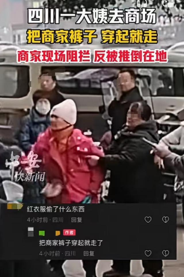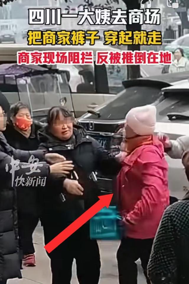 太横了!四川,一大姨试穿过服装店的裤子后,竟然穿起来转身就走,店主看见赶紧追过去提醒,大姨却理也不理直接离开。店主抓住大姨的胳膊一路追到停车场,大姨被围观,恼怒下又是打又是骂,直接将店主推倒在地! 据中安在线报道,这件事发生在2025年12月30日。 事发当天,一个穿着红色外套的大姨去某商场逛街,走着走着,大姨走到了一家女装店里。 当时店里客人不算太多,大姨挑选了半天,最后拿了一条裤子试穿。 穿上裤子后,大姨对着镜子照了又照,看起来很满意。 大姨穿着那条裤子,又左看右看挑了一会,但一直没挑到合适的。 当时店里虽然有几个顾客,但是店主开店多年,一直眼观六路耳听八方,所有人的一举一动都被她看在眼里。 按照正常人的做法,挑不出喜欢的,应该就会换下试穿的衣服,满意的就付钱,不满意的还给店家。 可那个红衣大姨没再挑中满意的衣服,竟然直接转身走了。 店主以为大姨忘记了,赶紧追过去,一边追一边喊,说大姨没把店里的裤子脱下来。 让人没想到的是,红衣大姨明明听见了,却当做没听见,直接往商场外走去。 店主也察觉出不对劲了,赶紧过去拉住大姨的胳膊,提醒她要么把衣服脱下来,要么付钱。 红衣大姨一甩胳膊,再次往外面走去。 店主也不敢太大力拉她,只好一边跟着她往外走,一边拽着她胳膊,一边大声让大姨付钱。 很快,两人来到了外面的停车场,周围很多路人被她们吸引,在周围看起了热闹。 红衣大姨见人越围越多,似乎也觉得有点没脸见人,于是便用力抽自己的胳膊,想甩开店主离开。 此时,两人已经被路人围在了圈子里,大姨一下没抽出胳膊,竟然恼怒起来,用另一只手打起了店主,好在店主避开了。 可下一秒,大姨竟然又用力推了店主一下,店主顺势往地上一躺,大声喊:打人了! 大姨甩开店主,板着脸就要离开。 此时,附近围观的人都明白了怎么回事,纷纷拉住大姨不让她走。 那么,大姨的这种行为从法律角度应该如何认定? 首先,大姨涉嫌构成不当得利和无权占有。 《民法典》规定,不当得利是指没有合法根据,使他人受到损失而自己获得利益的事实。 大姨试穿裤子后不付钱就离开,店家遭受财产损失,大姨自己获得了裤子的占有利益,构成不当得利。 同时,店家对裤子拥有所有权,大姨在试穿结束且未付钱的情况下,没有权利继续占有裤子,其行为属于无权占有。 根据《民法典》规定,店家有权要求大姨返还裤子,若裤子因大姨的行为出现损坏等情况,大姨还需承担赔偿责任。 此外,从行政层面来看,大姨涉嫌抢夺或寻衅滋事。 抢夺是指趁人不备、出其不意,公然对财物行使有形力,使他人不及抗拒,而取得数额较大的财物的行为。 大姨穿走的裤子价值可能未达到《刑法》上抢夺罪的标准,但在治安管理层面,大姨在店主能看到的情况下,穿走裤子径直离开,具有公然夺取财物的性质。 如果裤子价值达到一定程度,可认定为治安管理范畴内的抢夺行为。 寻衅滋事表现为在公共场所无事生非、起哄闹事,造成公共场所秩序严重混乱,或者强拿硬要、任意损毁、占用公私财物等行为。 大姨在店主追赶并提醒后,不仅不配合,还与店主发生肢体冲突,在商场停车场这样的公共场所造成众人围观,扰乱了公共秩序。 大姨强拿裤子的行为结合后续与店主的冲突情况,应当被认定为寻衅滋事。 根据《治安管理处罚法》的规定,大姨不管是抢夺,还是寻衅滋事,都应当被拘留并处罚金。 有人说,《治安管理处罚法》规定,七十周岁以上的老年人,违反治安管理处罚法的,依照本法应当给予行政拘留处罚的,不执行行政拘留处罚。 大姨看起来年纪不小了,就算店主报了警,顶多也就是批评教育一下,根本无法真的受到处罚。 值得注意的是,在2026年之前,《治安管理处罚法》确实有这样的规定,但是从2026年1月1日起,对于这种违法行为,已经有了新规定。 新法第二十三条新增了第二款,明确规定,14周岁以上未成年人,和70周岁以上的老人,只要违法行为情节严重、影响恶劣,或一年内有二次以上违反治安管理的,不再豁免执行行政拘留。 也就是说,对于那些仗着未成年或者老年人的身份有恃无恐的做坏事的,以后再也无法胡作非为了! 本案中,即便大姨年过70岁,除了罚款,她还要接受行政拘留!
