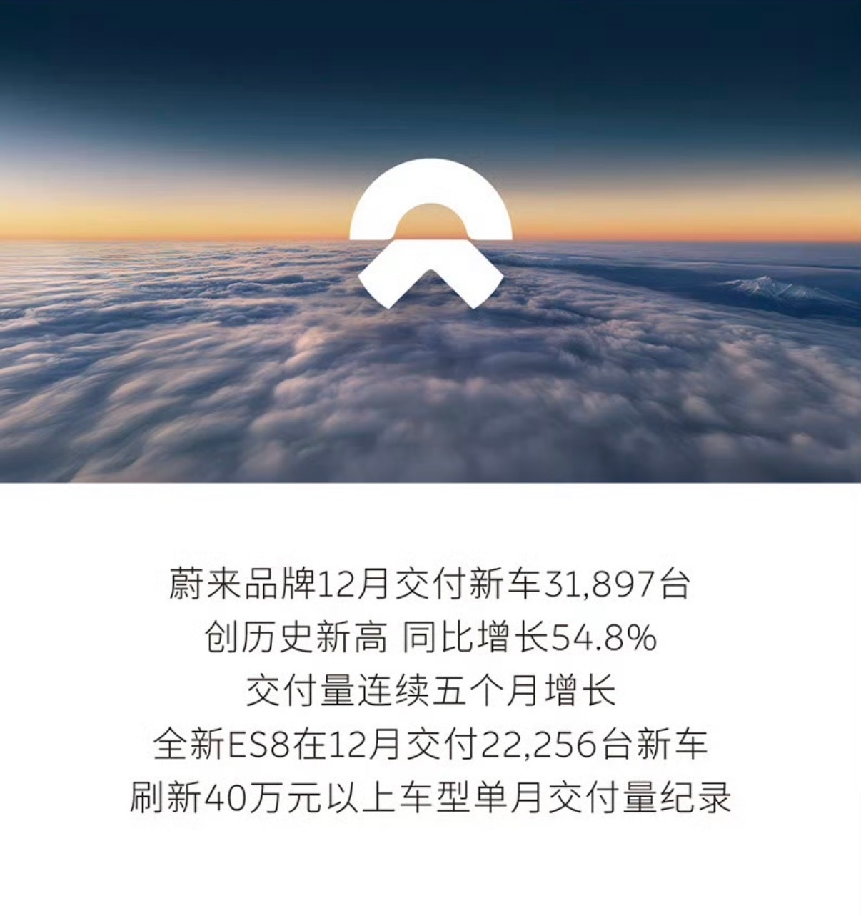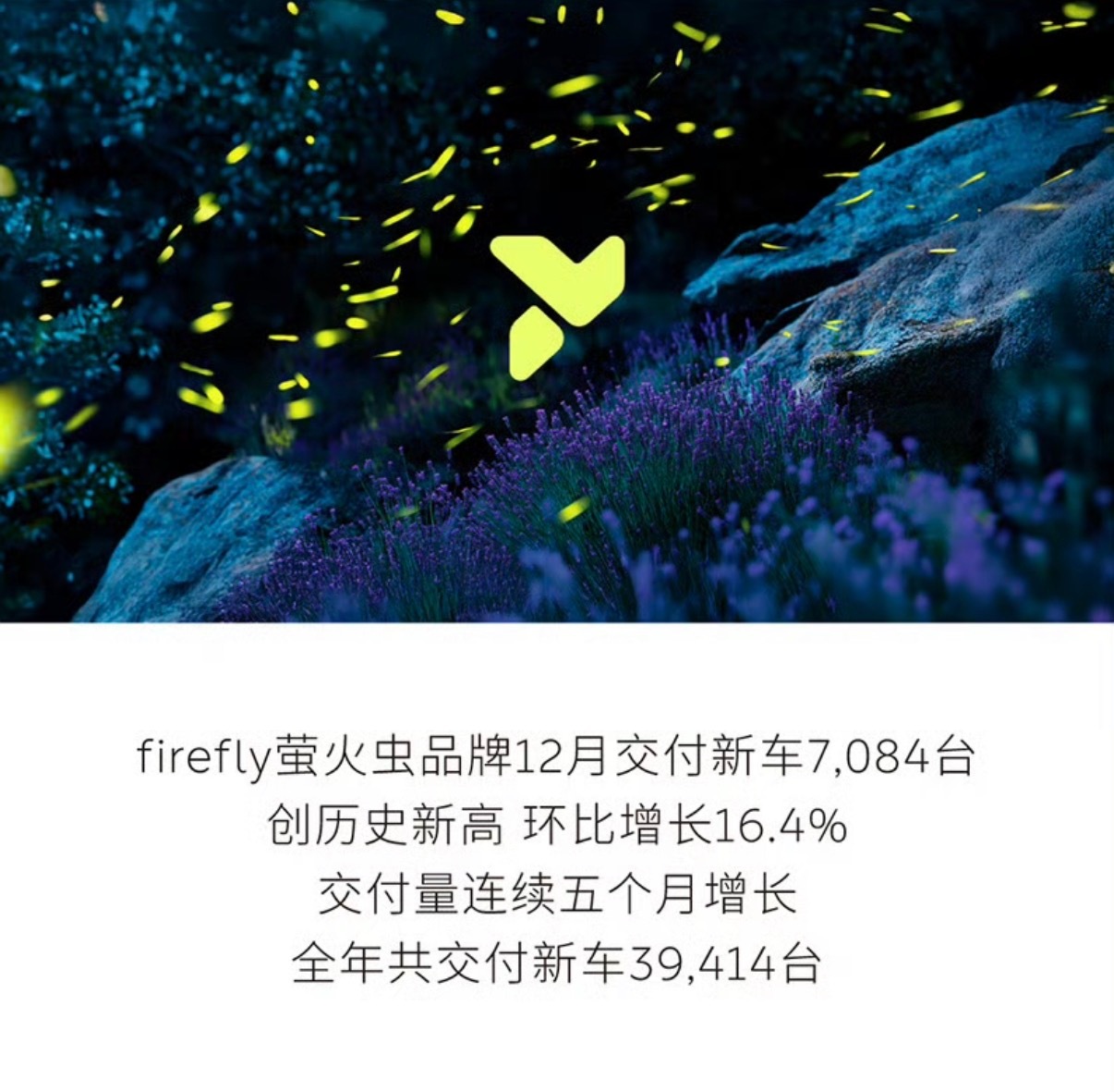 2025年12月,蔚来 公司交付新车48,135台,创历史新高,同比增长54.6%。(月报,季报,年报全线高增长)『月』其中,蔚来品牌交付31,897台,创历史新高,同比增长54.8%,交付量连续五个月增长;乐道品牌交付新车9,154台;firefly萤火虫品牌交付新车7,084台,创历史新高,环比增长16.4%,交付量连续五个月增长。『季度』2025年第四季度,蔚来公司交付新车124,807台,创历史新高,同比增长71.7%。三品牌季度交付量均创历史新高。其中蔚来品牌交付67,433台,同比增长27.8%;乐道品牌Q4交付新车38,290台,同比增长92.1%。firefly萤火虫品牌Q4交付新车19,084台,环比增长52.8%。『年』2025年全年,蔚来公司共交付新车326,028台,创历史新高,同比增长46.9%。其中,蔚来品牌共交付178,806台。乐道品牌共交付107,808台。firefly萤火虫品牌交付39,414台。截至目前,蔚来公司已累计交付新车997,592台。其中,蔚来品牌累计交付新车829,609台;乐道品牌累计交付新车128,569台;firefly萤火虫品牌累计交付新车39,414台。大v聊车