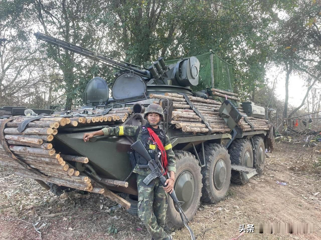 🇹🇭将VT-4坦克的爆炸反应装甲安装到FV101“蝎子”轻型侦察坦克上(泰国陆军)。这想法有点冒险,但何乐而不为呢? 图三,一辆BTR-3E1装甲车,采用原木伪装以适应丛林环境,车上还配备了一个用原木支架支撑的迷你防护架。