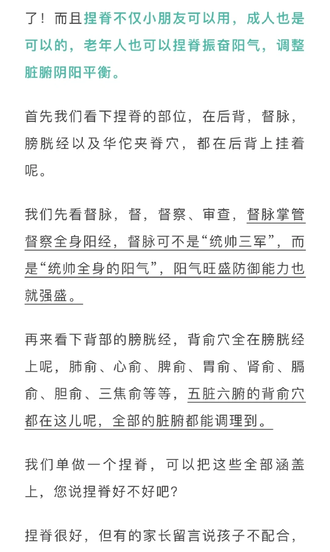 先说说捏脊,☯️因为捏脊真的太好了,可以涵盖多个穴位经脉❗️捏脊不仅小朋友可以用,成人也是可以的,老年人也可以捏脊振奋阳气,调整脏腑阴阳平衡。