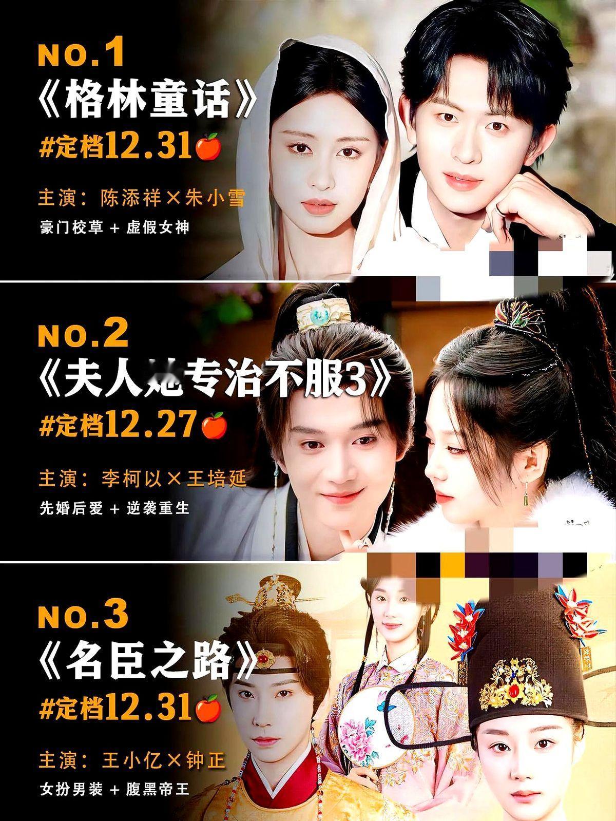 年末短剧圈要变天了,几部大剧定档简直是神仙打架。 就拿2025年12月27日上线的《夫人她专治不服3》来说,预约量直接干到了379万。主演李柯以和王培延都六搭演情侣了,粉丝基础稳得不行。前两季累计播放量破20亿,抖音话题23亿,这数据太吓人了。 它能爆,核心就是抓住了“女强男弱”这个反套路设定。平台数据显示,这类剧78%都是女性观众,18-35岁的姐妹们看得最上头,就爱这种强势女主治夫的爽感。 跨年还有朱小雪的《格林童话》,和王小亿挑战女扮男装学神的《名臣之路》对打,一个奇幻一个古装,选择困难症犯了。 虽然有人吐槽说剧太多手机内存告急,但这种短平快的快乐,真的很难拒绝。 这波剧我全都要追,年底的快乐就指望它们了,你呢?