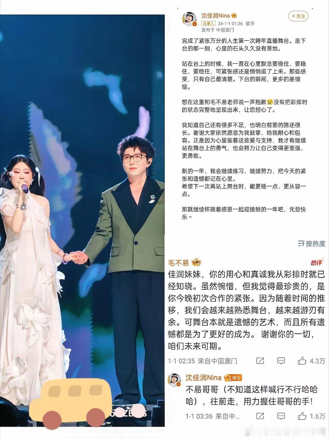 关于沈佳润的唱功,我不做评价。但有件事我十分确定,小沈阳定然叮嘱过女儿:犯错不可怕,关键是要坦荡认错、用心改正。她曾靠韩系甜美的《美美桑内》展现过游刃有余的一面,却在《不染》的演绎上栽了跟头,表现不尽人意。但她没有推诿,很快就向观众和原唱毛不易致歉,还表态会继续学习,毛不易也温柔地回应了她。对比其他明星,这份不扭捏的道歉态度格外难得,足见小沈阳把女儿教得很好。这份担当太亮眼了,盼着她下次能带着作品惊艳回归!