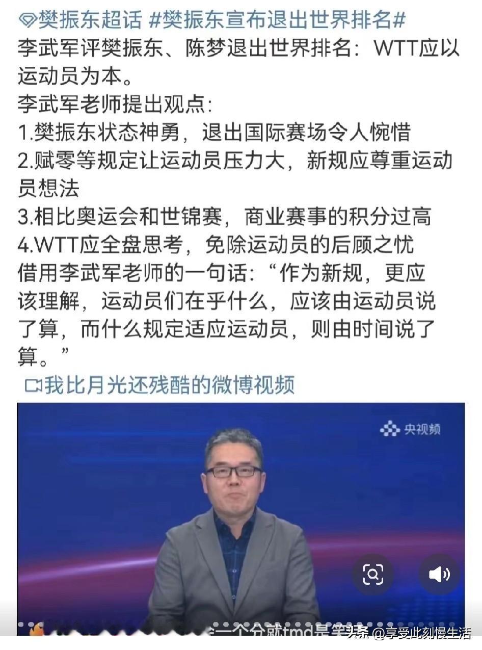 可还记得樊振东2024年末退出世界排名时李武军的独家观点。尤其是第三条:相比奥运