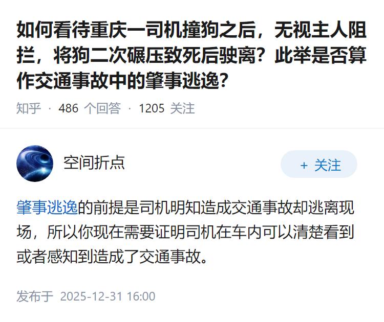 如何看待重庆一司机撞狗之后,无视主人阻拦,将狗二次碾压致死后驶离?此举是否算作交通事故中的肇事逃逸?