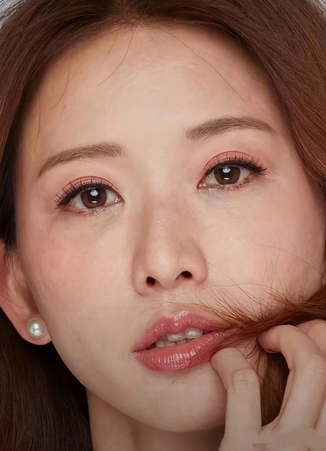 林志玲高清怼脸拍:眉若远黛,眼周染赤,睫毛长翘,目光疏离,素齿如贝,鼻头丰隆圆大,睁一只眼闭一只眼时,眼角皱纹荟萃,眼袋明显,你看是这样吧?
