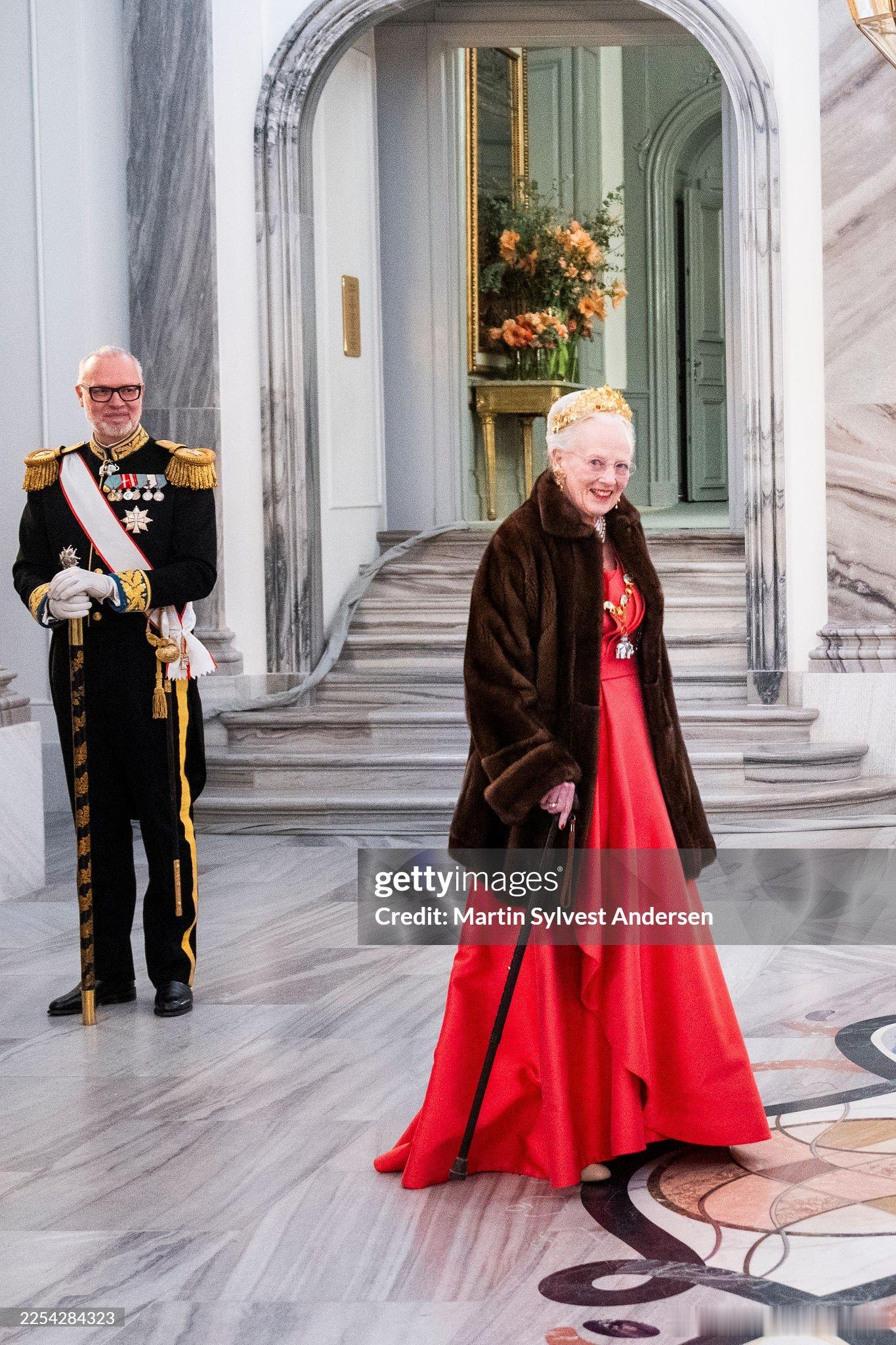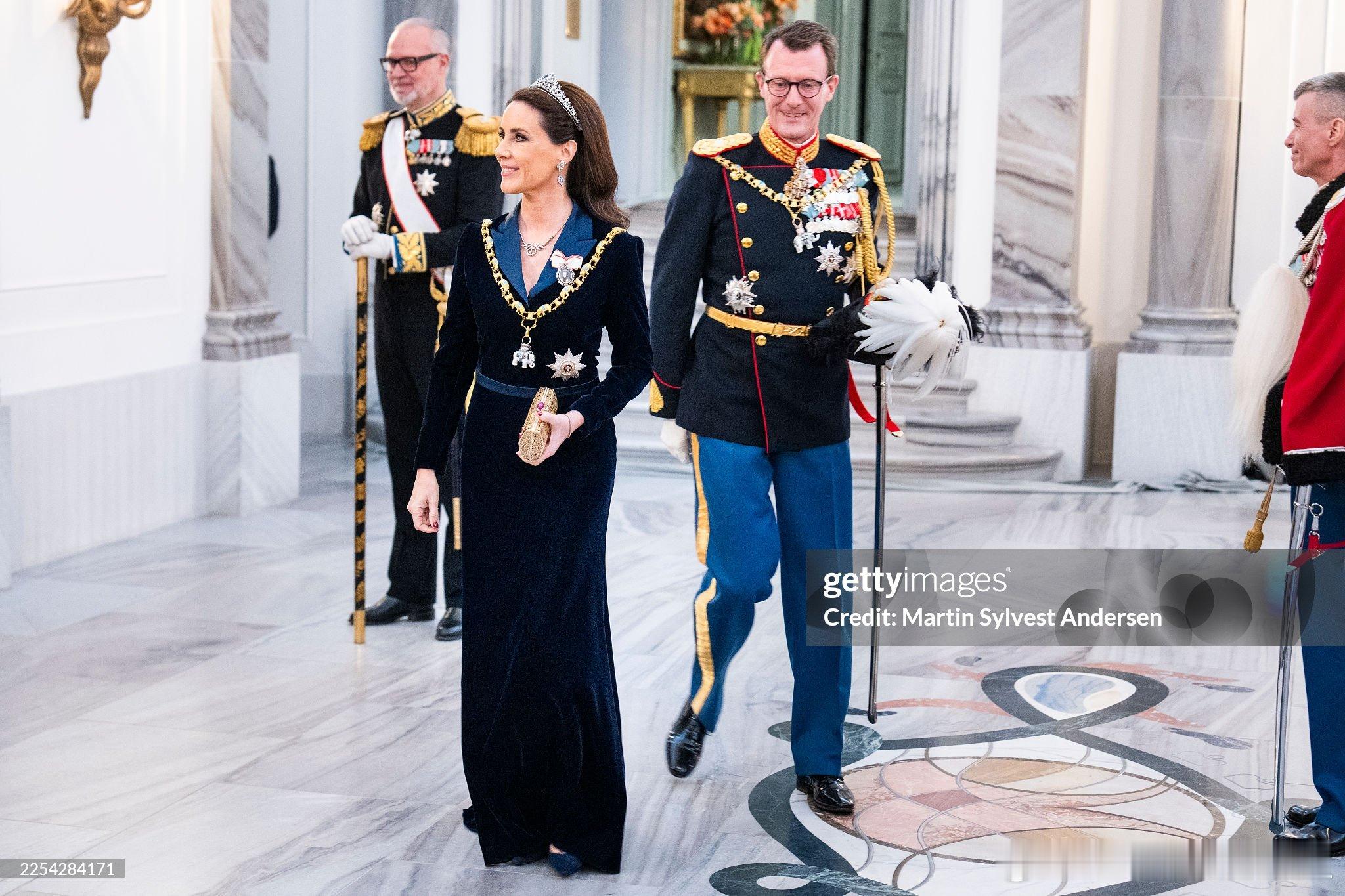 新闻 2026.1.1 丹麦王室成员出席一年一度的新年招待会活动,依旧是全员出席,大玛丽的Jesper Høvring金色绸缎长礼服继续旧款改新,小玛丽直接穿回去年穿过的礼服,不过有新项链,两位老太太穿得最好看。