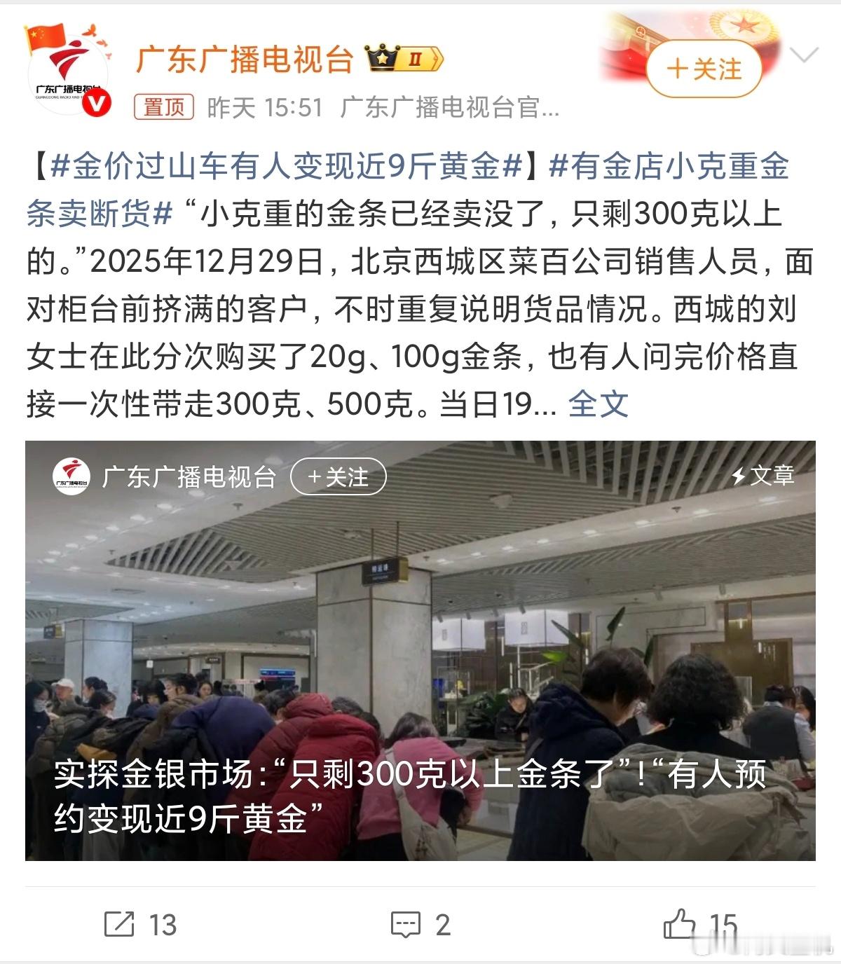 有金店小克重金条卖断货纯属废话文学,现在就黄金最保值,大家当然有资产就囤黄金了,但是大克重的大家又买不起,只能囤点小克重的,毕竟现在黄金都贵到这个地步了。