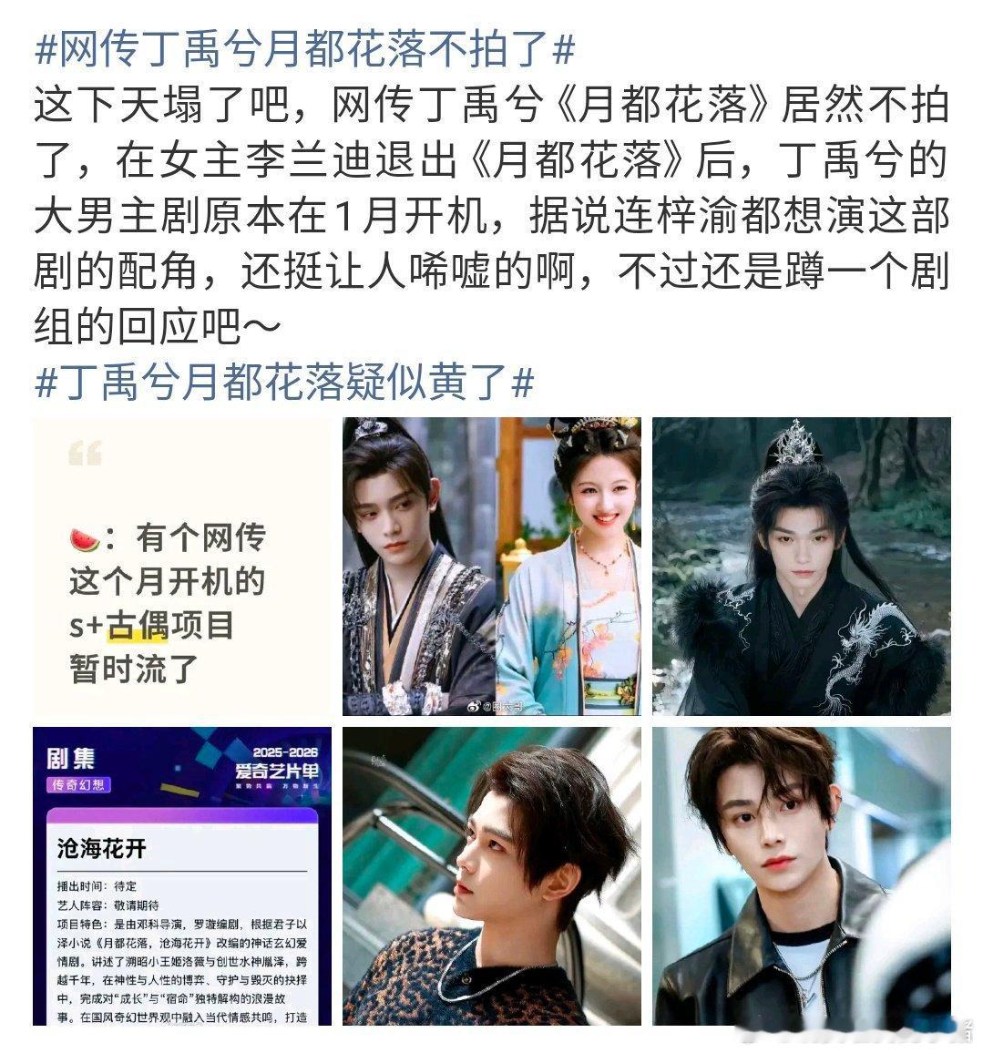 李兰迪粉丝喊丁禹兮嘿称,还说是因为李兰迪不演月都花落所以才黄的😢