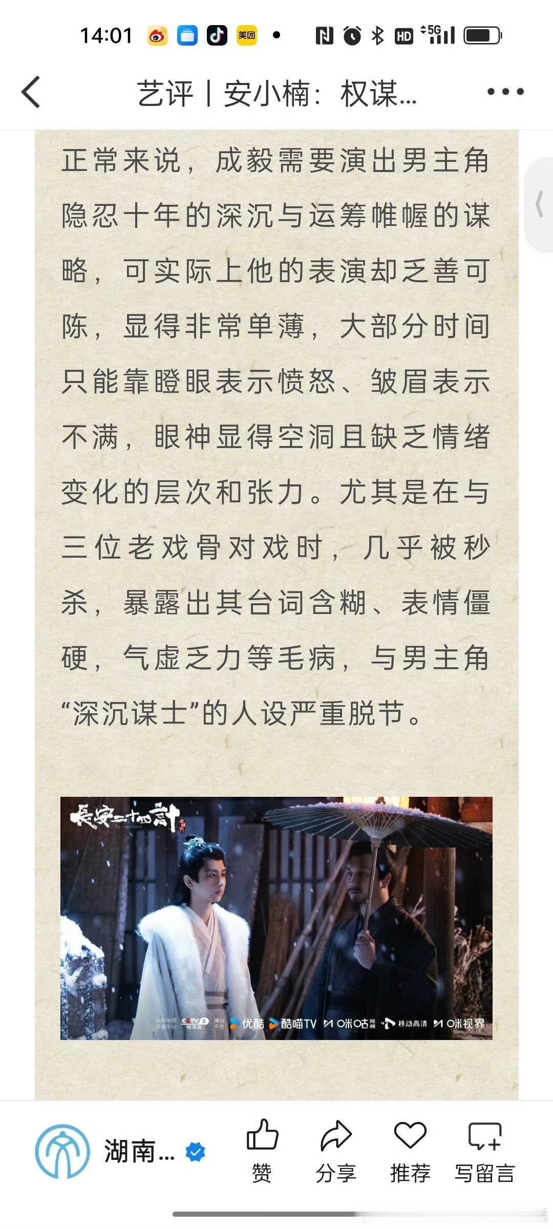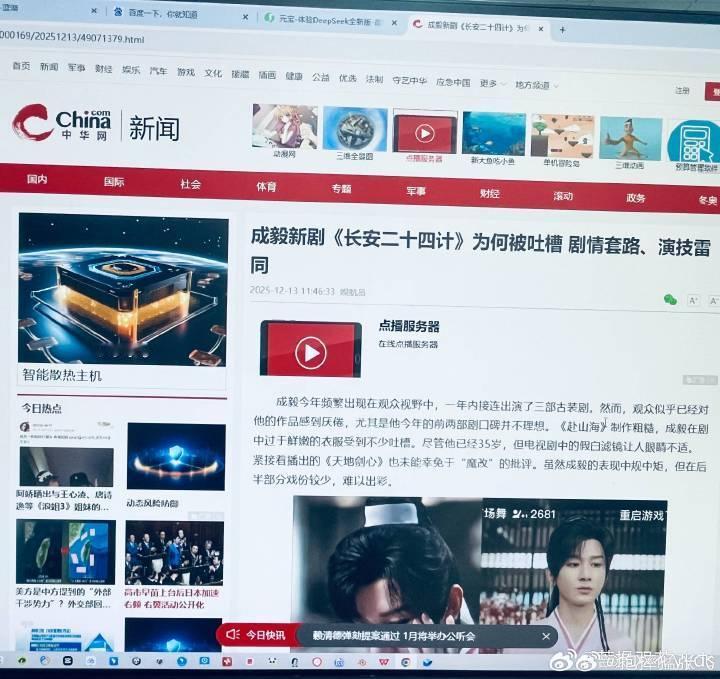 好消息,官媒发成毅了,坏消息,说他演技单薄,只能依靠瞪眼表示愤怒,皱眉表示不满,缺乏情绪变化和张力,台词含糊,气虚乏力,表情僵硬(湖南文联哦,ee哥哥是湖南人吧, 中华网哦,ie姐姐们以前最喜欢吹中华网吧)