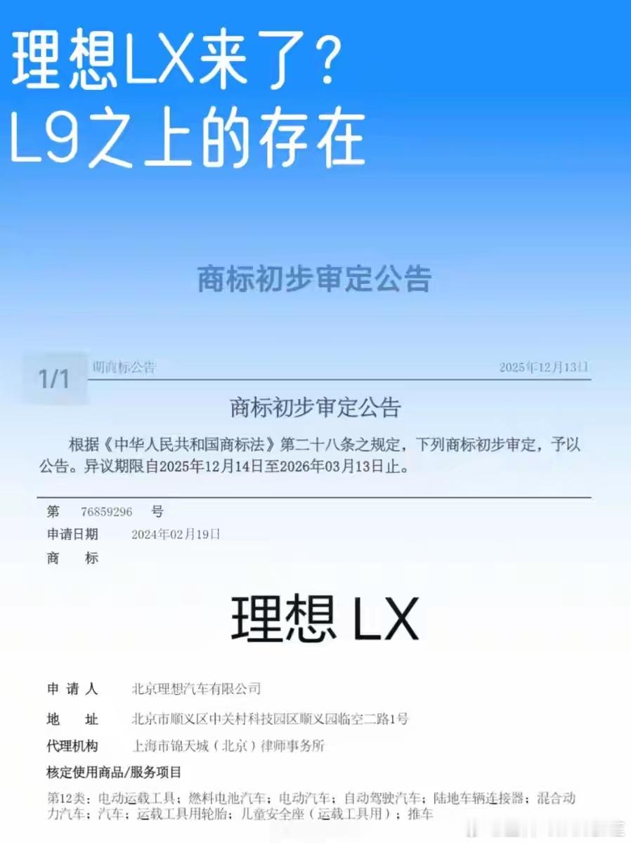“理想 LX” 商标已通过初步审定!! 硬派?