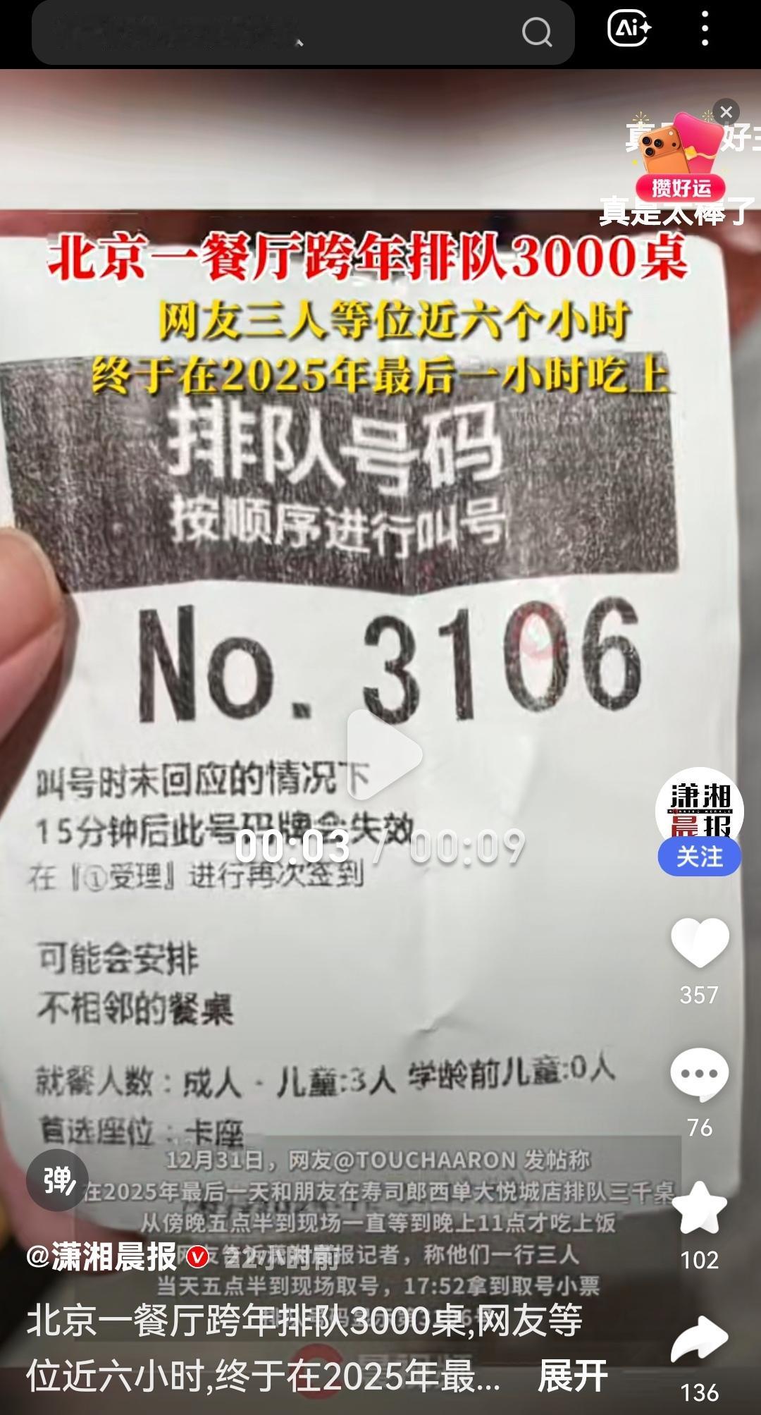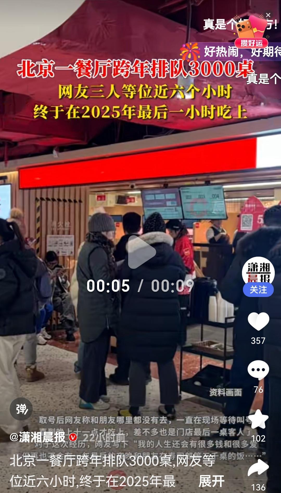 北京跨年夜排队3000桌:寿司郎成“排队奇迹”背后,真相令人震惊! 12月31日,北京西单大悦城的寿司郎餐厅迎来了一年一度的跨年盛事。当天傍晚五点半,三名顾客领取排队号码(编号3106),从此开始了长达近六小时的等待,直到当晚十一点才终于用餐。这场排队盛况引发了广泛关注,成为北京年度跨年夜的一大“奇迹”。然而,这背后隐藏的原因、各方反应以及深层次的社会问题,却值得我们深思。 据现场目击者描述,排队时队伍排得井然有序,但等待的焦虑与期待交织,令人感受到节日的特殊氛围。 这场排队现象,迅速在社交媒体上传开。有人称之为“跨年奇迹”,有人质疑“排队背后的商业操控”。而据餐厅官方消息,寿司郎当晚的预订已满,现场排队人数远超平日,甚至出现“秒杀式”的排队场景。 不少顾客表达了对排队时间的无奈,但同时也有人觉得这是“难得的跨年体验”。“等待六小时,只为吃上一口喜欢的寿司,虽然辛苦,但也算一种特别的记忆。”一位排队的年轻人如是说。 商家回应:寿司郎官方强调,门店在节日高峰期间采取了合理的排队管理措施,旨在提供优质服务。“我们尊重每一位顾客的等待,也希望每个人都能在新的一年里享受到美味。”但也有业内人士指出,超长排队反映出供应链紧张与需求爆炸式增长的矛盾。 北京餐饮行业协会专家李明(化名)表示:“这种排队现象反映出供需不平衡,尤其是在节假日,餐饮企业应提前做好容量规划,避免顾客体验受损。”他还指出,当前中国餐饮市场正处于快速扩张期,部分品牌为了追求爆发式增长,忽视了基础的服务管理。 这场跨年夜排队事件,折射出中国餐饮行业的两个极端:一方面是消费者对品质和体验的追求,另一方面则是企业在高速扩张中面临的管理难题。 数据显示,2025年中国餐饮市场规模已突破5万亿元,年增长率保持在10%以上。巨大的市场需求带来了供应链压力,也让一些企业在节假日出现“人力紧缺、排队长”的局面。 消费者心理与文化:中国传统节日强调团聚与仪式感,许多年轻人愿意为“特别的体验”等待数小时。这也促使餐厅在营销中利用“排队文化”吸引流量,但长时间等待是否影响消费者的整体体验,值得反思。 业内专家建议,餐饮企业应借助科技手段优化排队管理,比如预约系统、排队叫号APP等,提升效率,减少等待时间。同时,消费者也应理性对待“排队奇迹”,理解背后的商业逻辑。 北京跨年夜的排队奇迹,究竟是餐饮行业的创新突破,还是管理上的盲点?在追求繁荣的同时,如何保障消费者的体验与权益?这不仅关乎一家餐厅,更是整个行业的未来方向。 你是否也曾为某场排队而心生犹豫?你认为,节假日的“排队文化”是否值得被推崇?欢迎留言分享你的看法,让我们共同探讨这个城市的“排队奇迹”背后,隐藏的深层次问题。