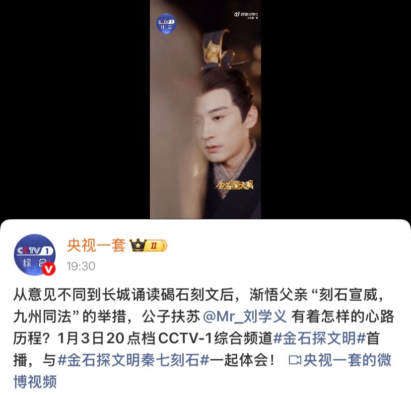 刘学义金石探文明❄️刘学义兰香如故央视一套的官号都发了耶期待公子扶苏