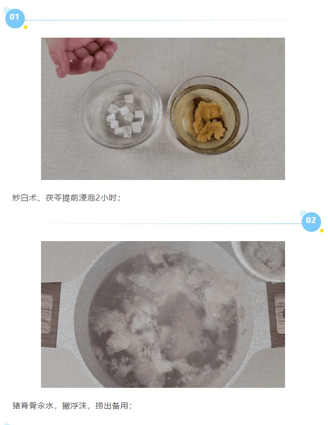 01炒白术、茯苓提前浸泡2小时;