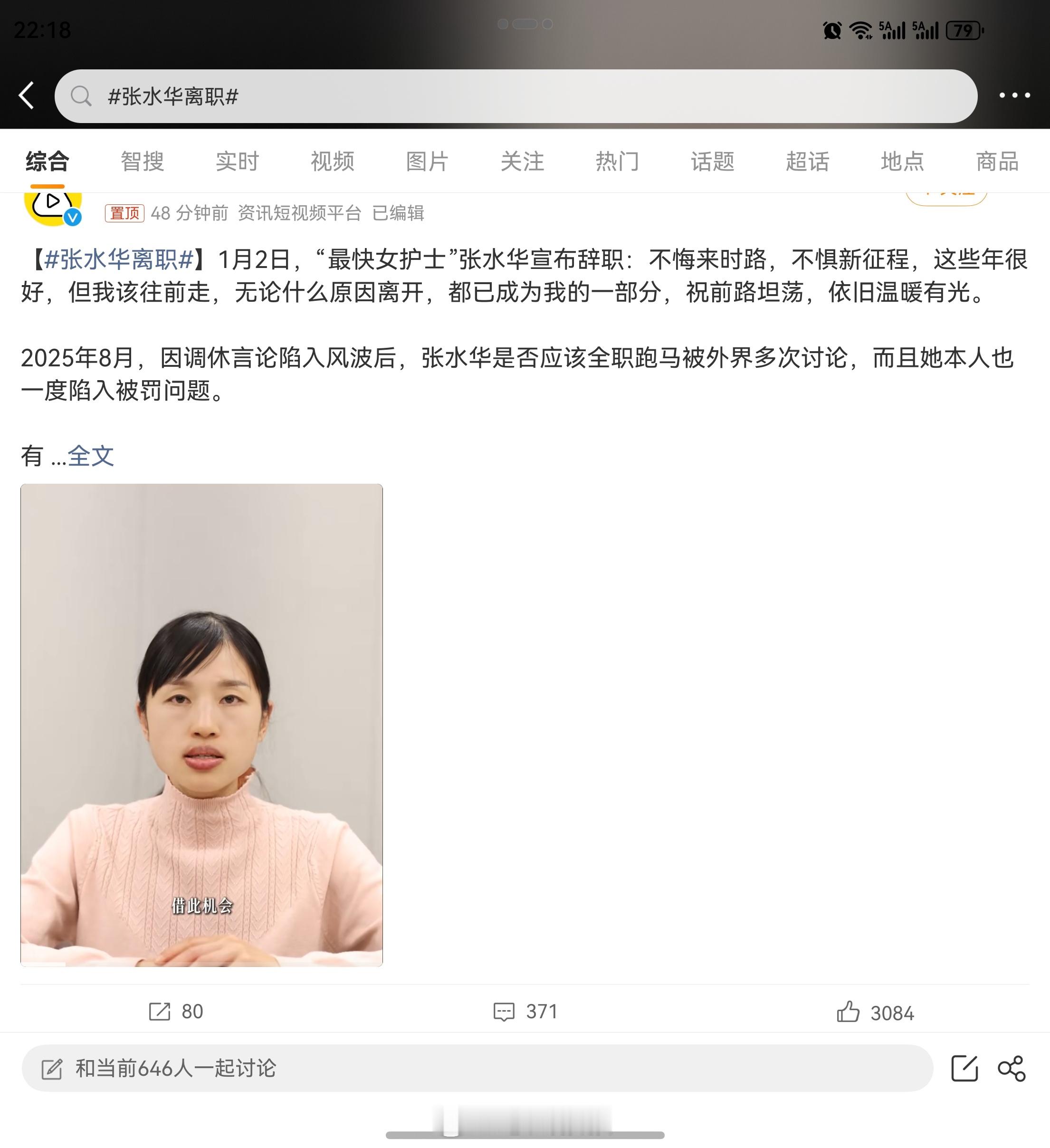 张水华离职 张水华官宣离职了,我觉得这样对她和医院双方都是最好的结局。她有兴趣有能力就去跑职业好了,跟医院和同事也好聚好散。她也不用一直被骂。 直白点说一句,趁着自己还有点热度,转行当个健身博主也不是不行 广州
